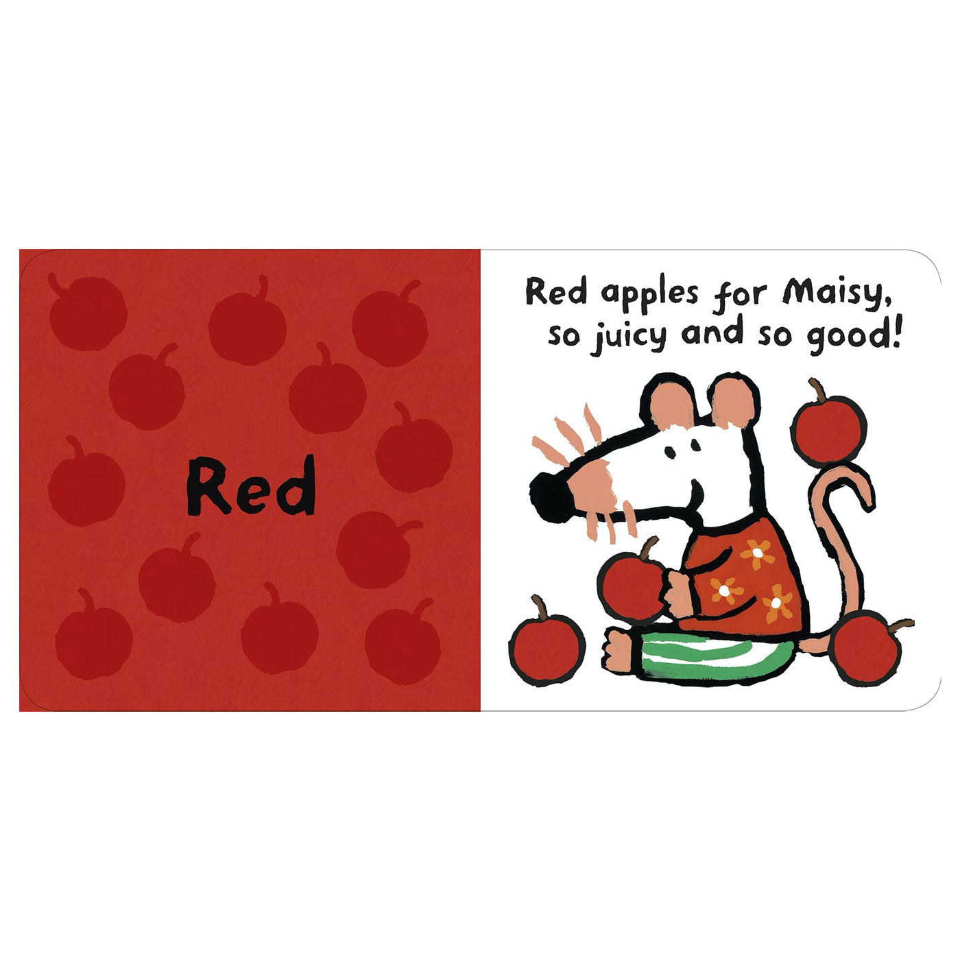 Maisy ve tüm arkadaşları, lezzetli sarı muzlar ve lezzetli elmalar da dahil olmak üzere en sevdikleri renkli yiyecekleri sergilemeye hazır. Bu muhteşem kalın kitap, parlak, canlı tonları kabartma ve dokularla birleştirerek renkler hakkında bilgi edinmeyi heyecan verici, dokunsal bir macera haline getiriyor! Neşeli final yayını - Maisy ve tüm en sevdiği arkadaşlarının yer aldığı eğlence dolu bir piknik sahnesi - her şeyi birbirine bağlar ve tüm renkleri bir kez daha özetler.