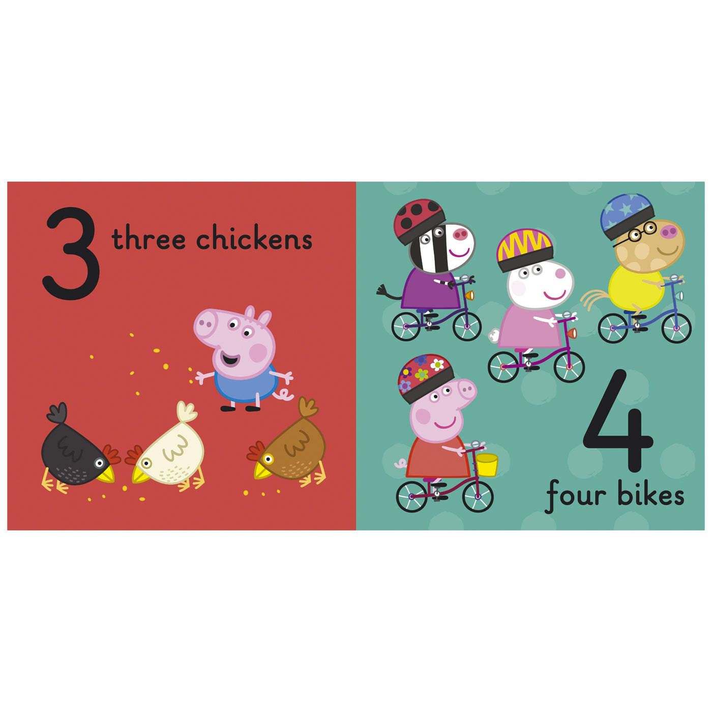 1 dinozor, iki bot, 3 tavuk... Peppa'yla birlikte 1'den 10'a kadar saymak çok eğlenceli! Dayanıklı sayfaları ve renkli çizimleri ile bu sevimli kitap, küçük yaşta olan çocuklara sayıları öğretmek için ideal.