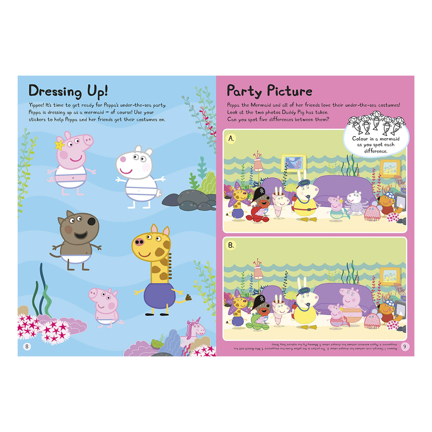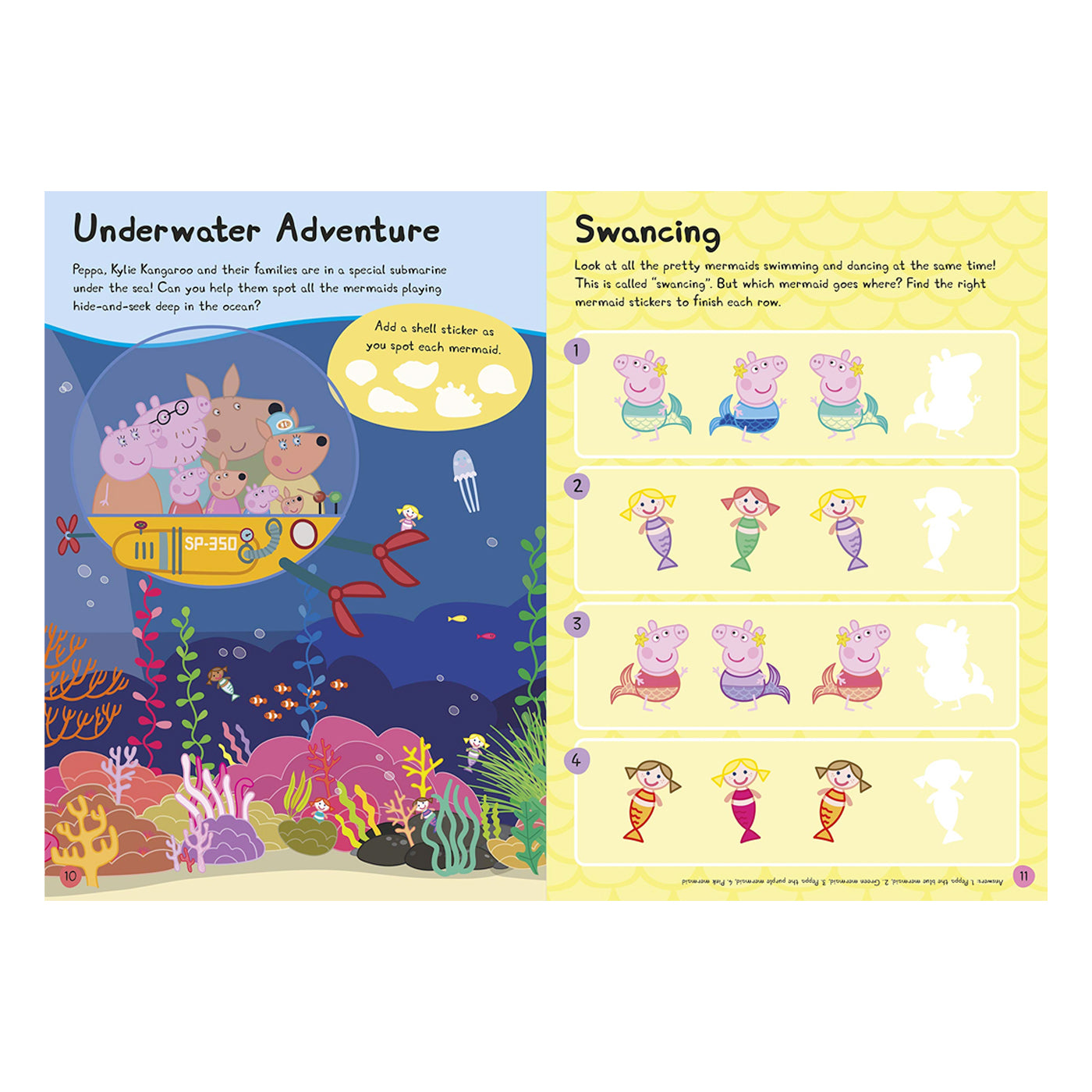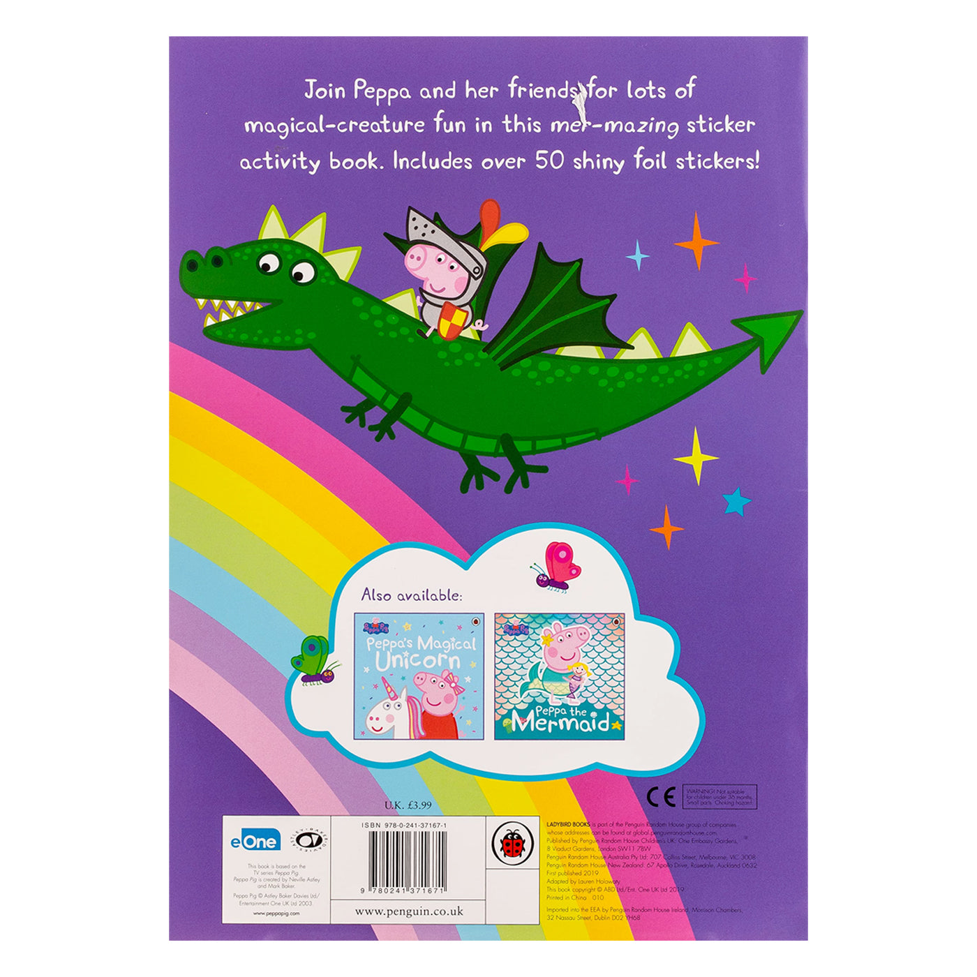 50'den fazla parlak folyo çıkartma ile Peppa'yla birlikte deniz kızları, tek boynuzlu atlar ve ejderhalarla dolubir maceraya çıkın. Baba Domuzun Peppa'nın oyuncak atı Horsey Twinkle Toes'u ışıltılı, renkli bir tek boynuzlu ata dönüştürmesine yardım edin ve deniz altındaki süslü elbise partisinde deniz kızı olan Peppa'ya katılın!
