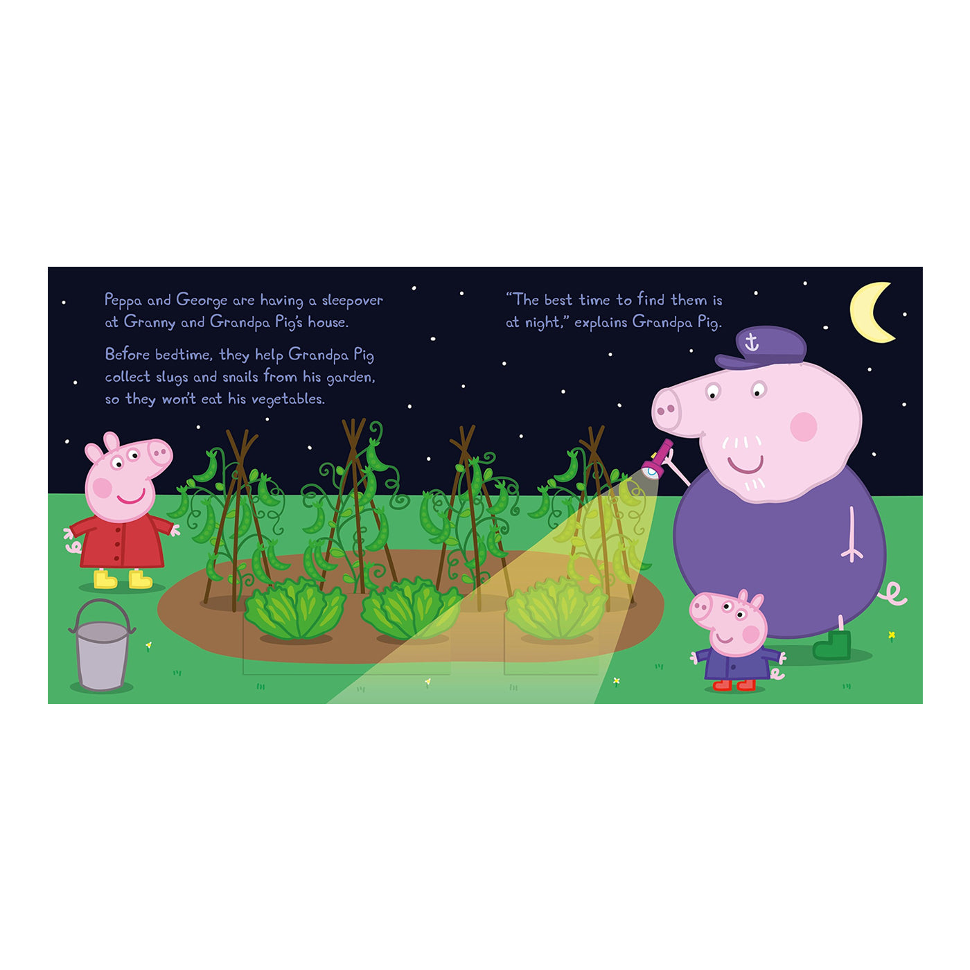 Çocukların en çok sevdiği çizgifilm karakteri Peppa Pig, eğlenceli kitaplarıyla sizlerle! Peppa ve George bahçedeki salyangoz, sümüklü böcek ve diğer gece hayvanlarını arıyor. Kapakçıkları kaldırarak gece hayvanlarını bulmasına yardımcı olun, eğlenceye katılın.