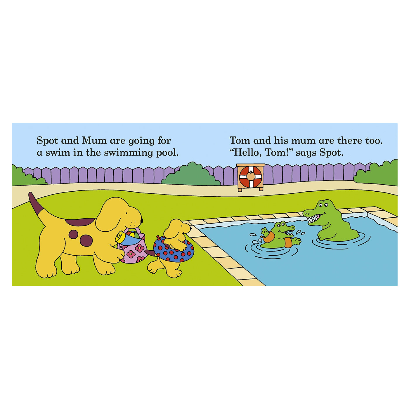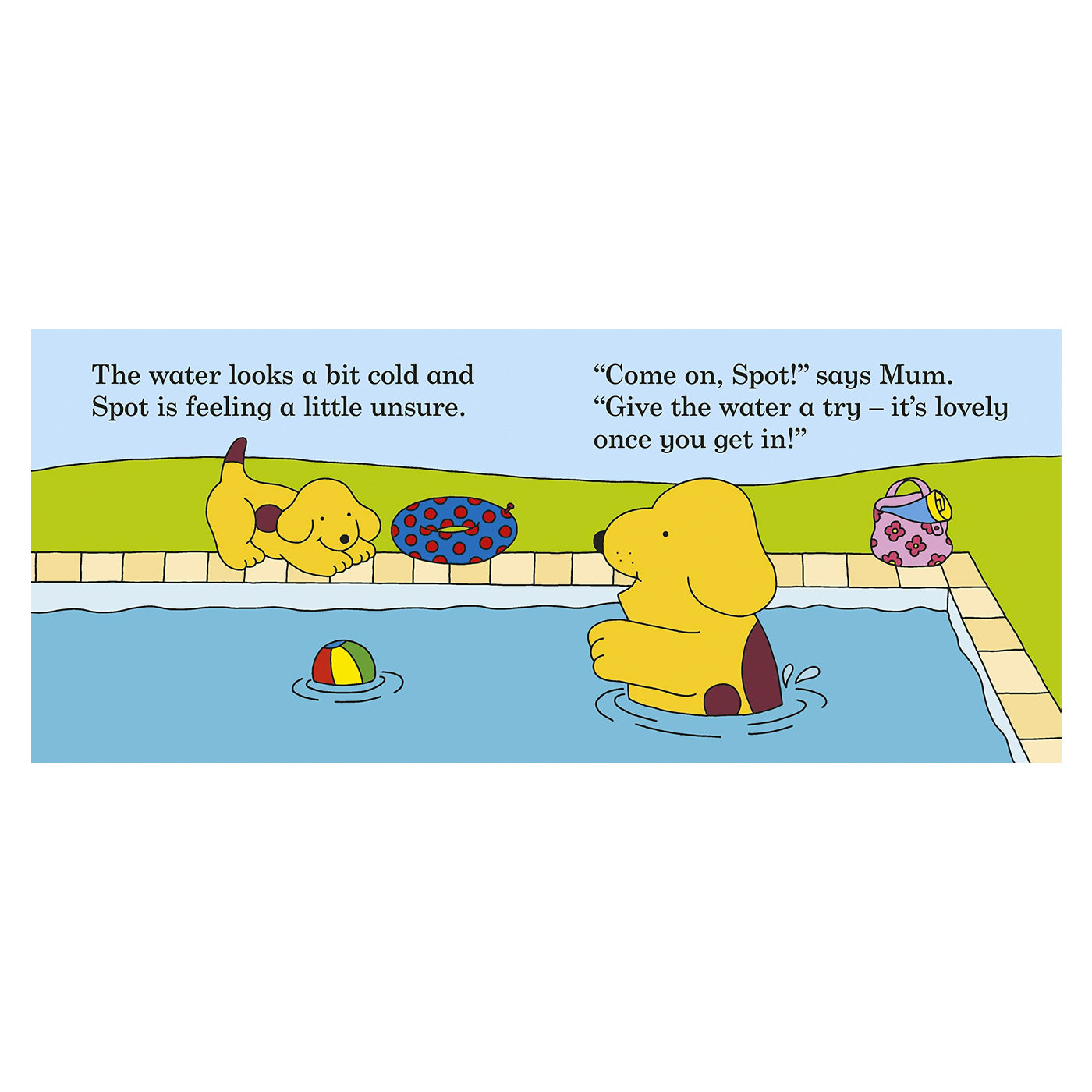 Sevimli köpek Spot'un havuz macerasında ona eşlik etmeye ne dersin? Spot, annesi ve yüzme simidi ile havuza gidiyor. En başta suya girmekten biraz korksa da, arkadaşları ve annesinin desteğiyle havuzda eğlenceli dakikalar geçiriyor. Bu kısacık hikaye, korkuları aşabilmek adına küçükler ilham veriyor.