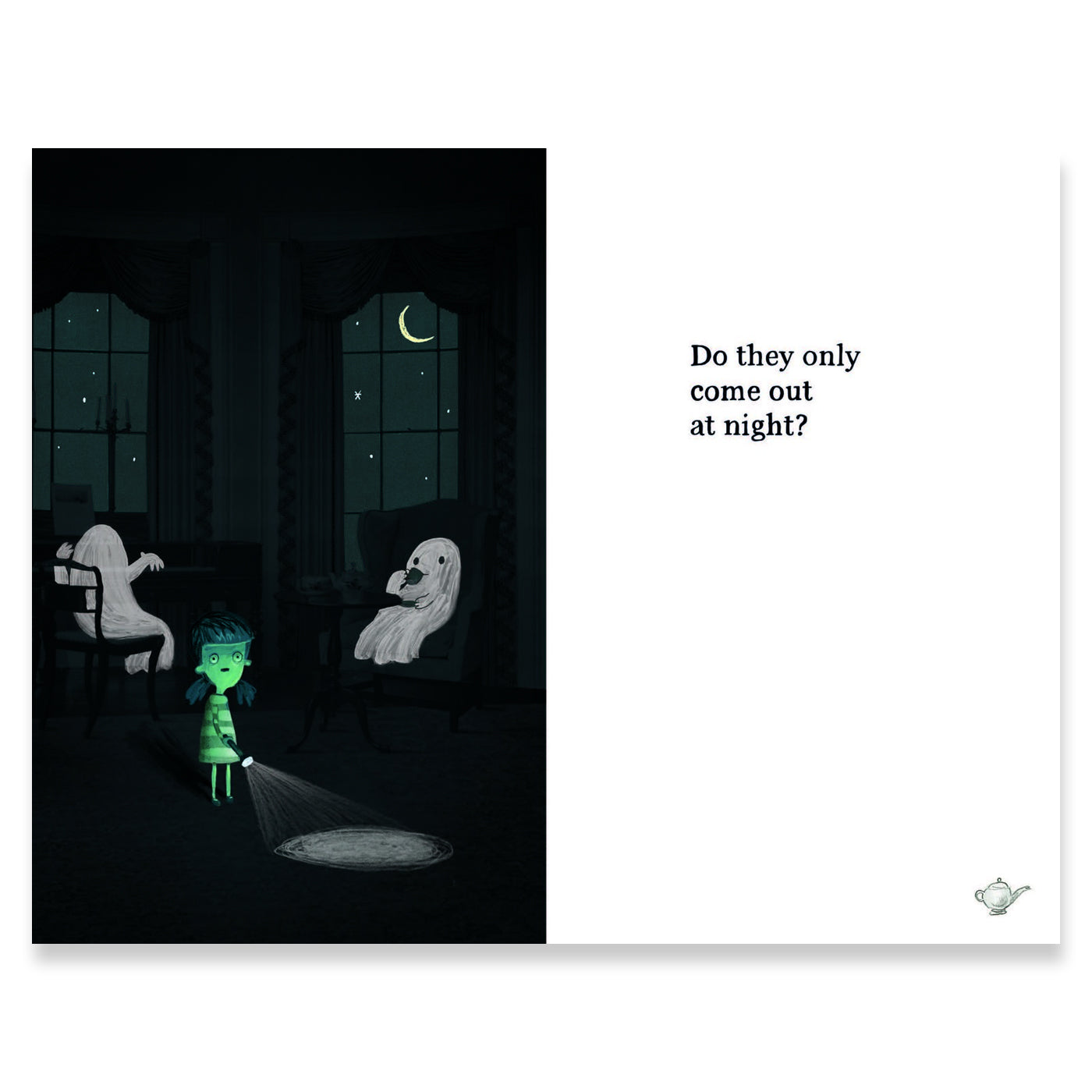 Küçük bir kız perili bir evde yaşıyor. Yani en azından o bu evde hayalet görmeyi umuyor... Seslerini duyuyor, her yere bakıyor ama bir türlü hayaletleri göremiyor. Kitabın içindeki şeffaf sayfaları çevirdiğinizdeyse, bu küçük kızın göremediği hayaletler açığa çıkıyor.