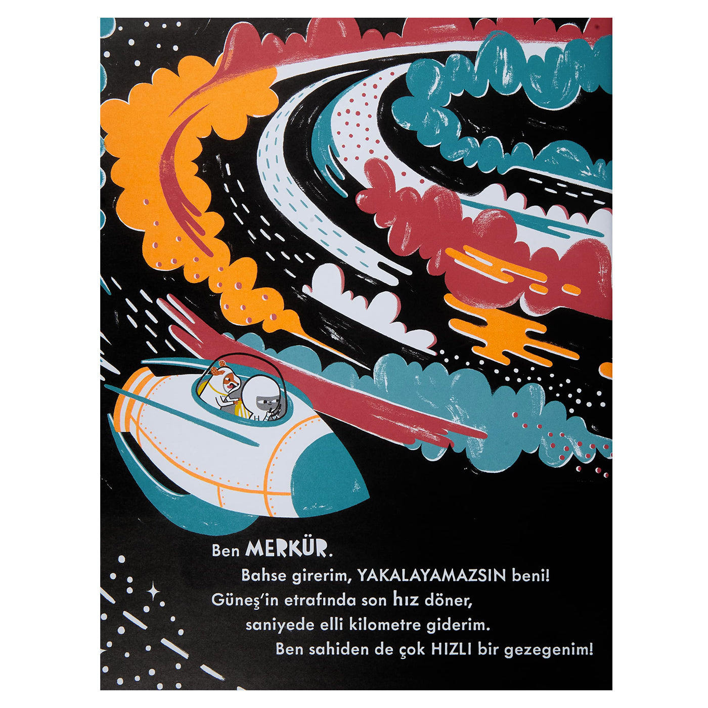Odasının penceresinden gökyüzüne bakan küçük kız, minik bir rokete atlıyor ve uzayı keşfe çıkıyor. Sen de bu macerada ona eşlik edebilir, Güneş'i, Mars'ı, Satürn'ü... Gezegenleri onunla beraber keşfedebilirsin.