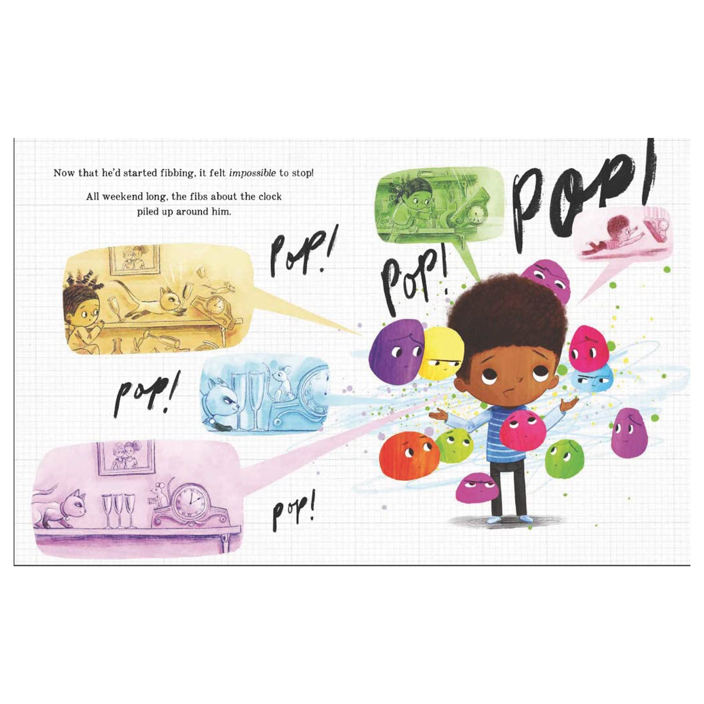 Finn büyükannesinin yanında olmayı seviyor. Ta ki bir gün kontrolden çıkan küçük bir yalan söyleyene kadar! Finn büyükannesinin değerli saatini yanlışlıkla kırıyor. Küçücük bir yalanla suçu kız kardeşine atıyor! Çok geçmeden Finn'in küçük yalanı kontrolden çıkıyor ve her şeyin önüne geçiyor! Acaba Finn gerçeği söylemenin bir yolunu bulabilecek mi? Bu güven verici ve esprili kitap, çocuklarla dürüstlüğün önemi hakkında konuşmak için mükemmel bir zemin sunuyor.