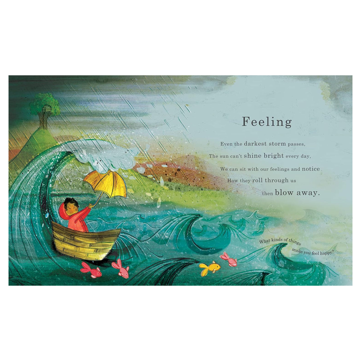 Sakin vakit geçirmek için mükemmel, dinlendirici bir kitap olan Happy, her sayfasında çarpıcı illüstrasyonlar ve düşündürücü cümleleri ile çocukları duygularını ve etraflarındaki güzel dünyayı keşfetmeye nazikçe teşvik ediyor.