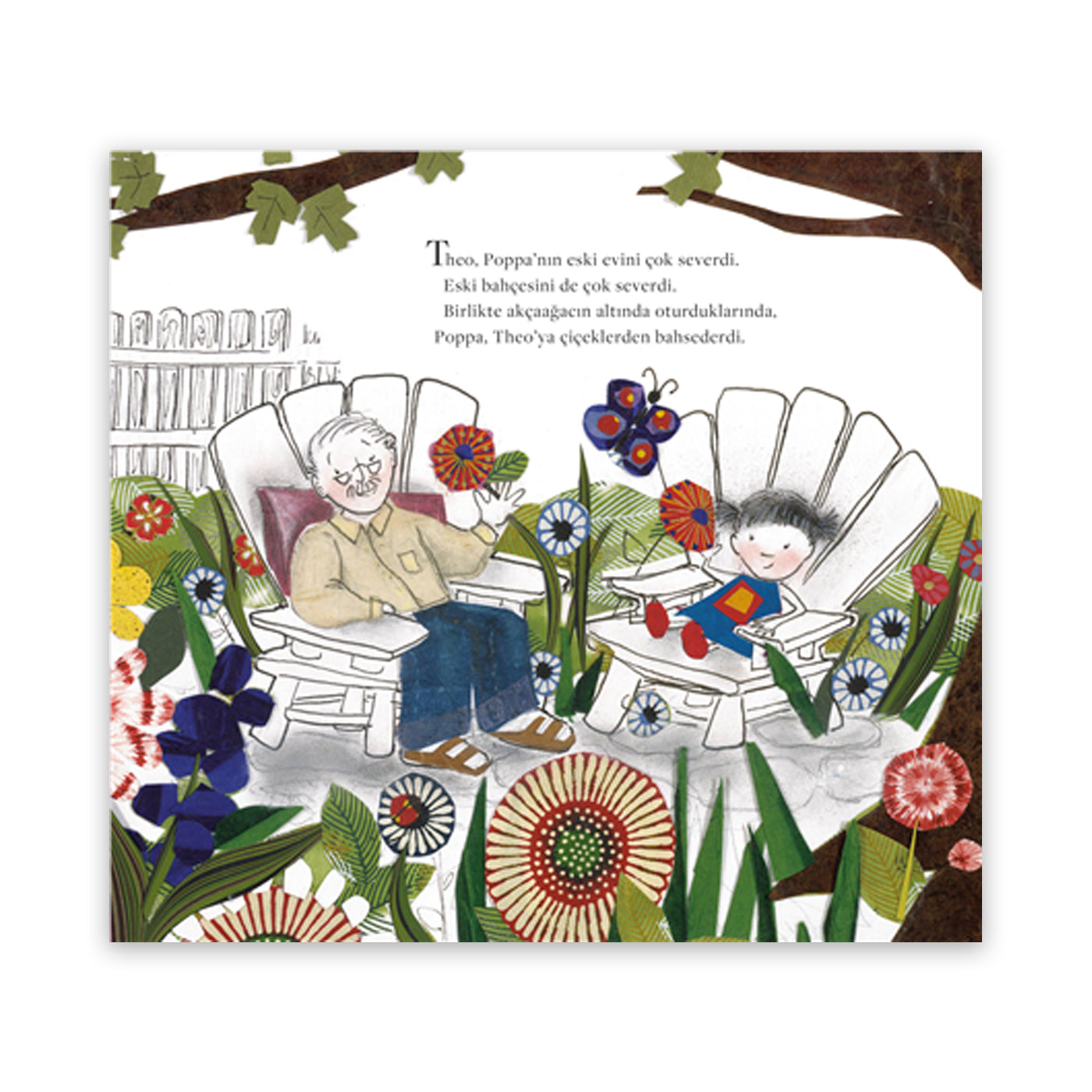 Theo, büyükbabası Poppa'nın bahçesinde oturmayı ve onunla sohbet etmeyi çok seviyordu. Fakat Poppa bir apartman dairesine taşınınca bu durum değişmek zorunda kaldı. O renkli bahçeden mahrum kalmış olsalar da, Theo ve büyükbabası boyalar ve fırçalarla kendi hayali bahçelerini yaratabileceklerini düşündüler.