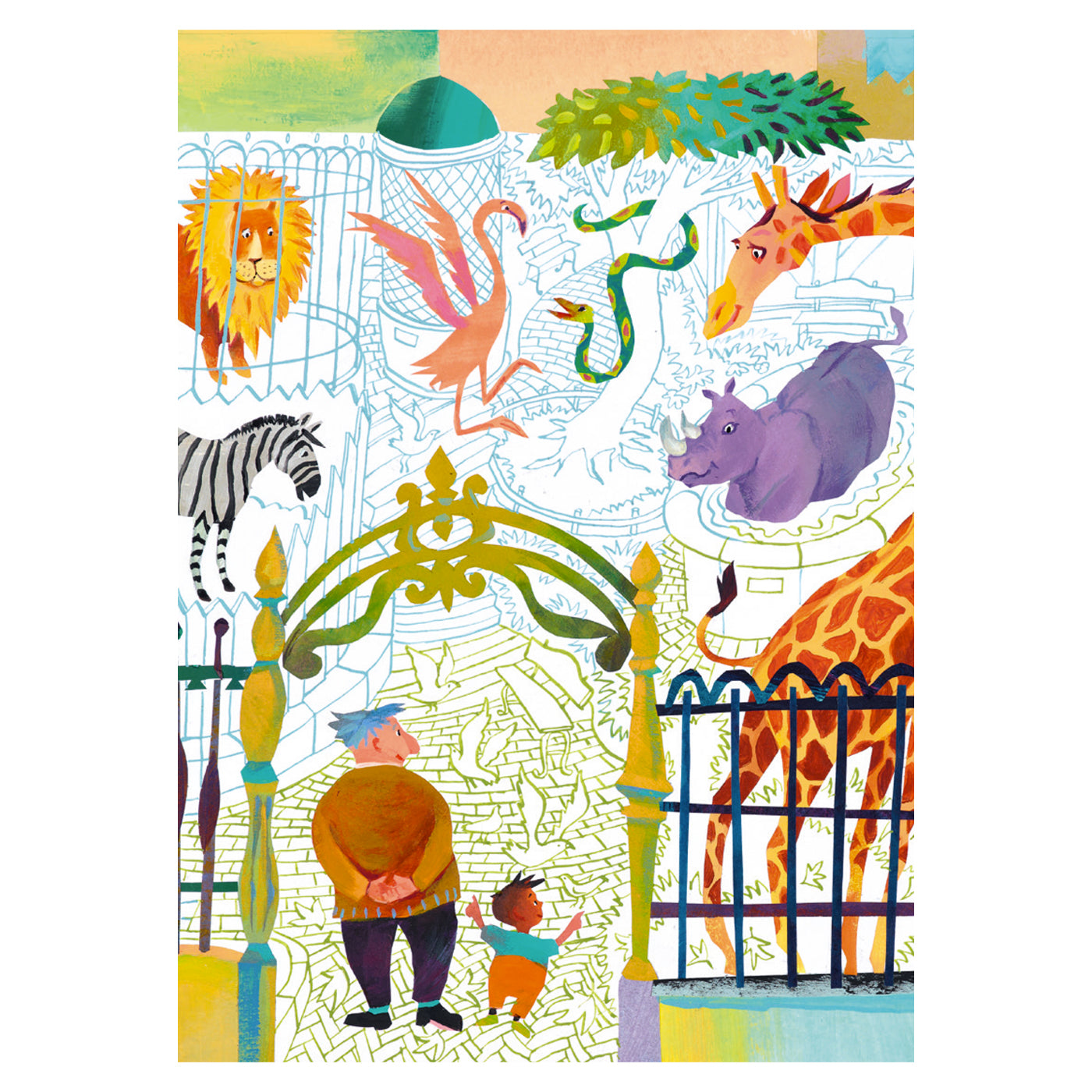 Sorularla dolu bu kitapla, çocuklar hayvanat bahçesindeki hayvanların çeşitliliğini keşfediyor. Filden tavus kuşuna, gergedandan flamingoya kadar meraklı bir çocuk ve dedesi her bir hayvanı ziyaret ediyorlar.