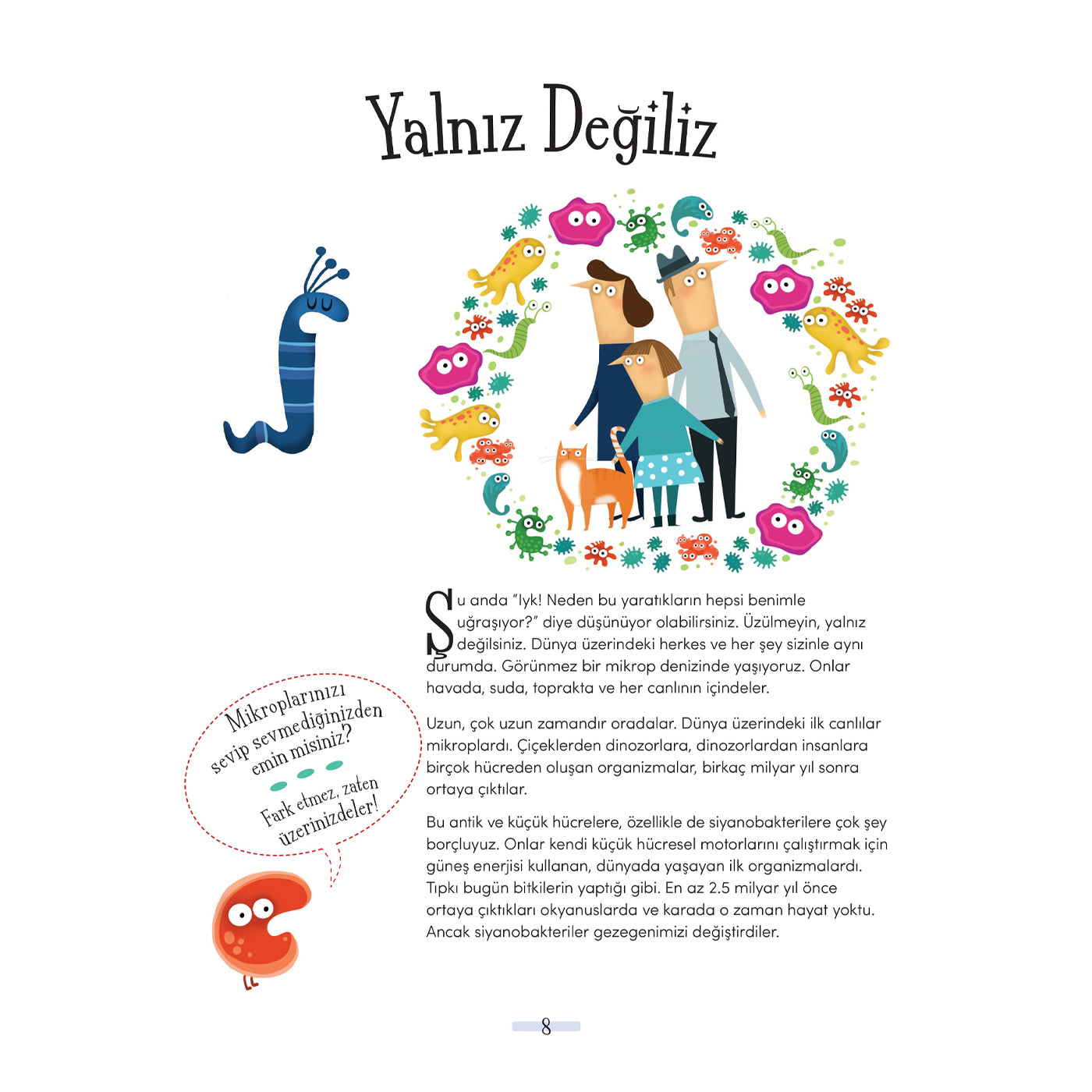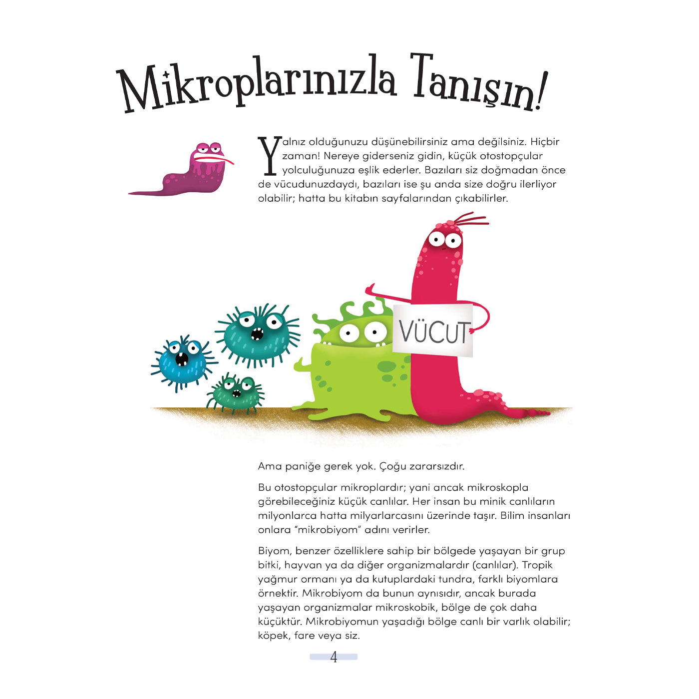 Bu kitap mikroplar hakkında çocuklara harika bilgiler sunuyor. Mikroplar ne zamandır dünya üzerindeler, ne işe yararlar, onlardan sakınmamız mı gerekir yoksa sağlığımız için faydalı olan mikroplar var mıdır gibi pek çok sorunun cevabı, eğlenceli çizimlerin eşlik ettiği bu kitapta...