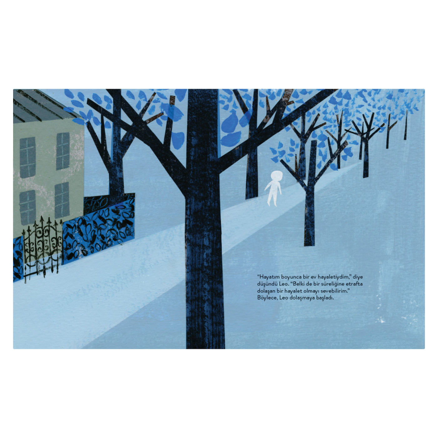 The New York Times En İyi Resimlenmiş Çocuk Kitabı (2015) ödülünün sahibi Leo: Bir Hayalet Hikayesi, adı üstünde Leo isminde bir hayalet çocuğun hikayesini anlatıyor. Ama Leo korkulacak bir hayalet değil; tam tersi çok iyi kalpli. Yaşadığı eve yeni bir aile taşınınca çok seviniyor ve onlarla arkadaş olmak istiyor. Ama maalesef aile, onunla aynı fikirde değil. Leo'nun üzülerek evi terk etmesi gerekiyor. Uzun süredir uzak kaldığı şehrin sokaklarında gezerken, ona yalnızlığını unutturacak yeni bir arkadaş ediniyor.