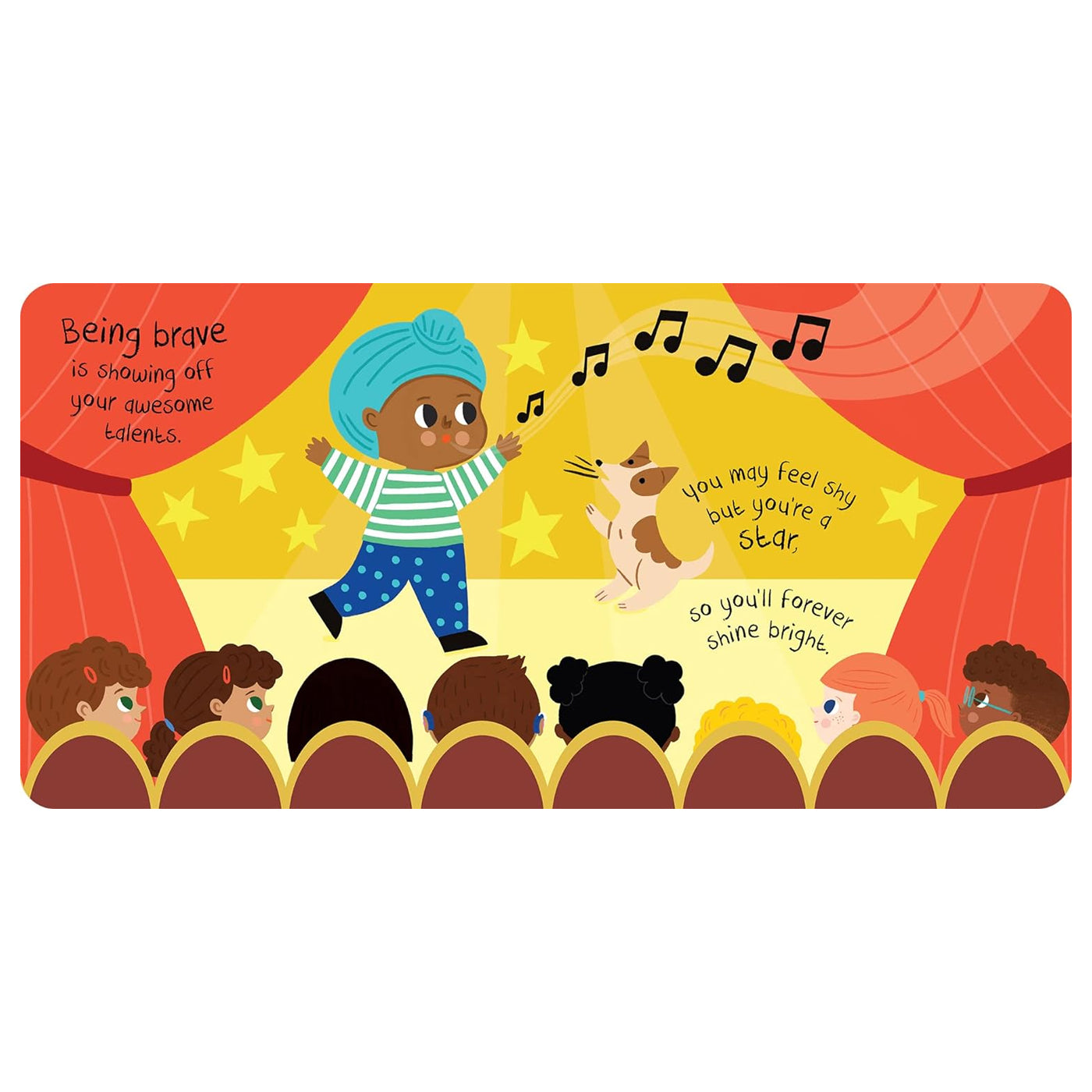 Hayallerinizin peşinden koşmaktan, kendinizi savunmaktan yeni arkadaşlar edinmeye kadar cesaret hepimizin içinde olan bir şeydir. Sahnede durmak kadar büyük ya da keyif aldığınız bir şeyi yapmak kadar küçük olabilir ama her zaman önemli olacaktır. Neşeli, ilgi çekici sanat eserleri ve basit metinler, küçük okuyucuların cesaretin her şekilde ve boyutta olabileceğini ve konfor alanımızın dışında bir şey yaptığımızda her zaman gurur duymamız gerektiğini anlamalarına yardımcı oluyor.