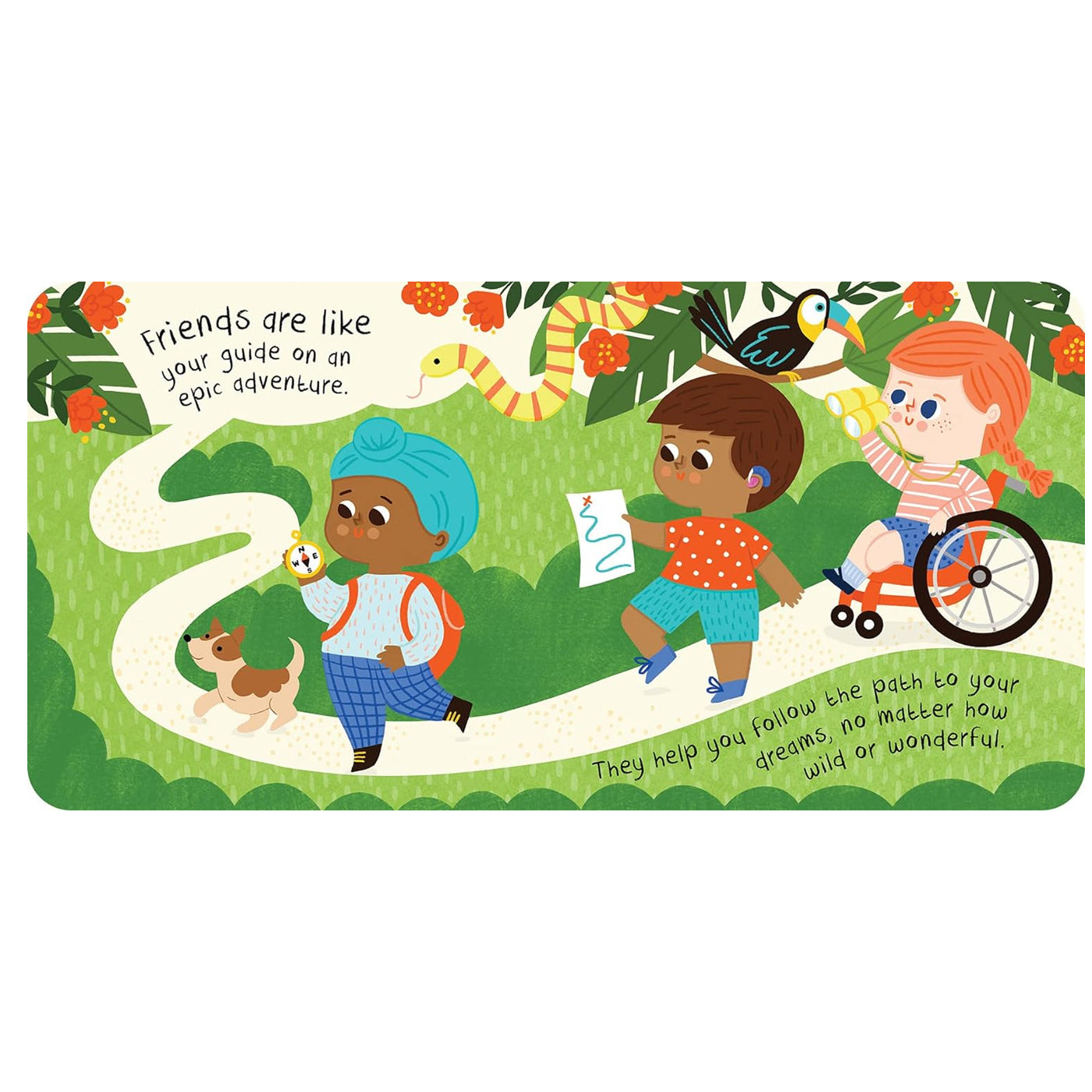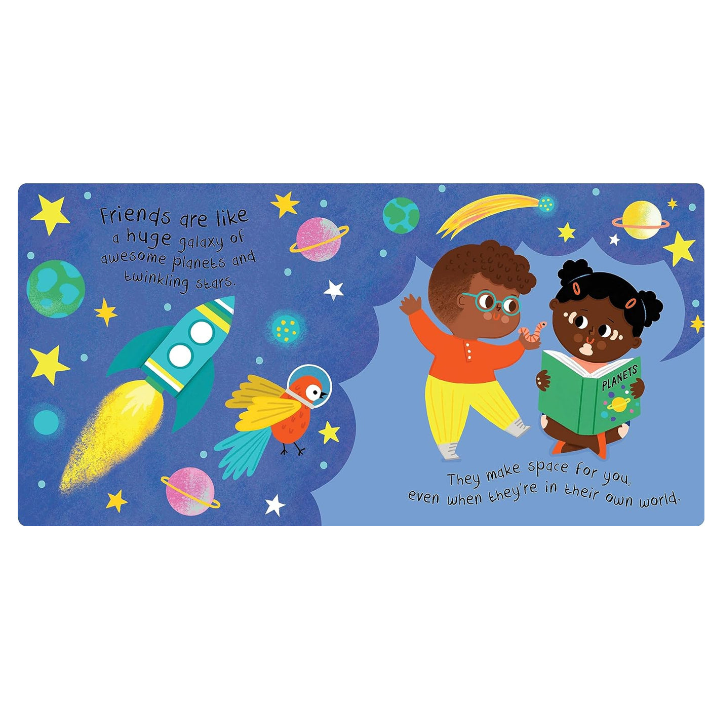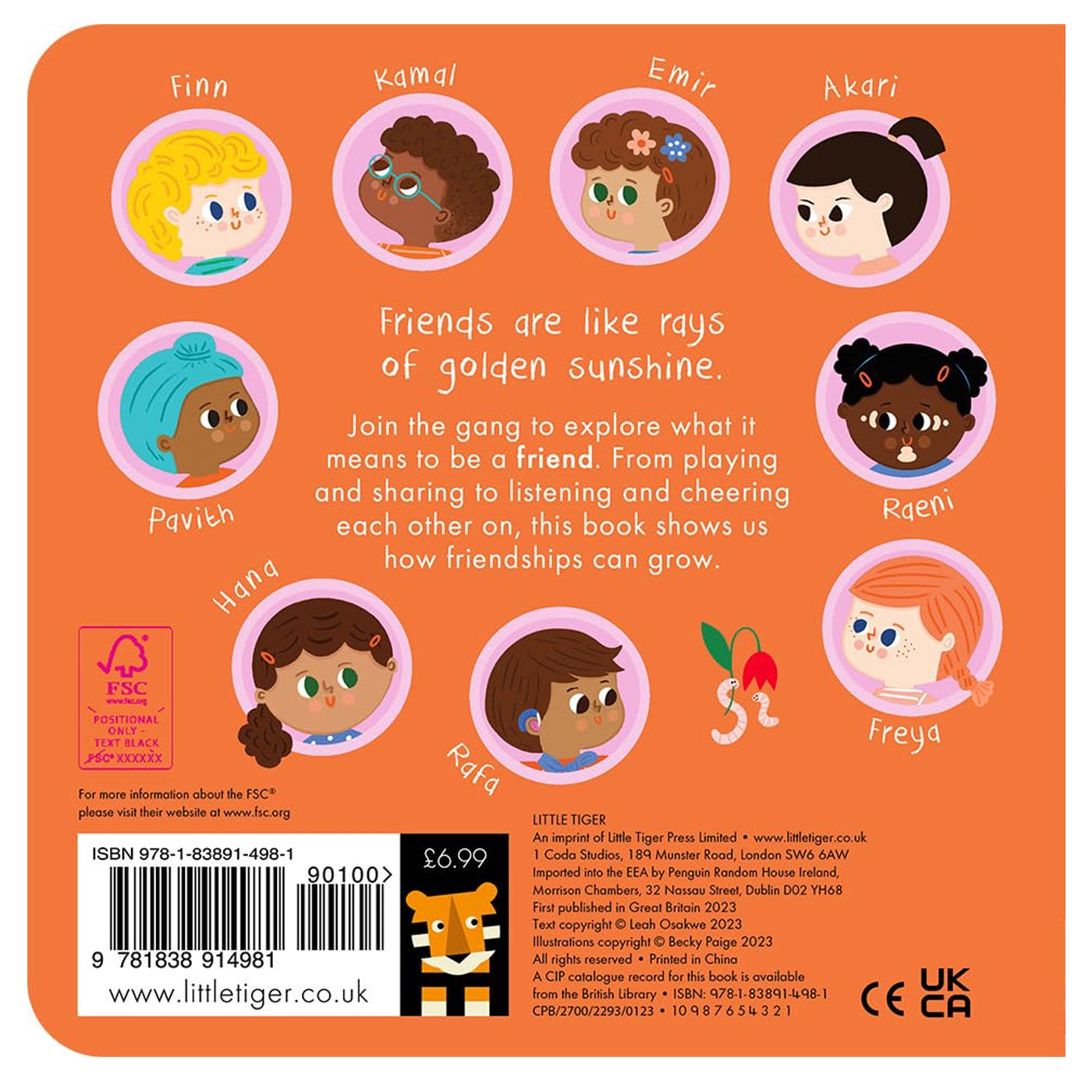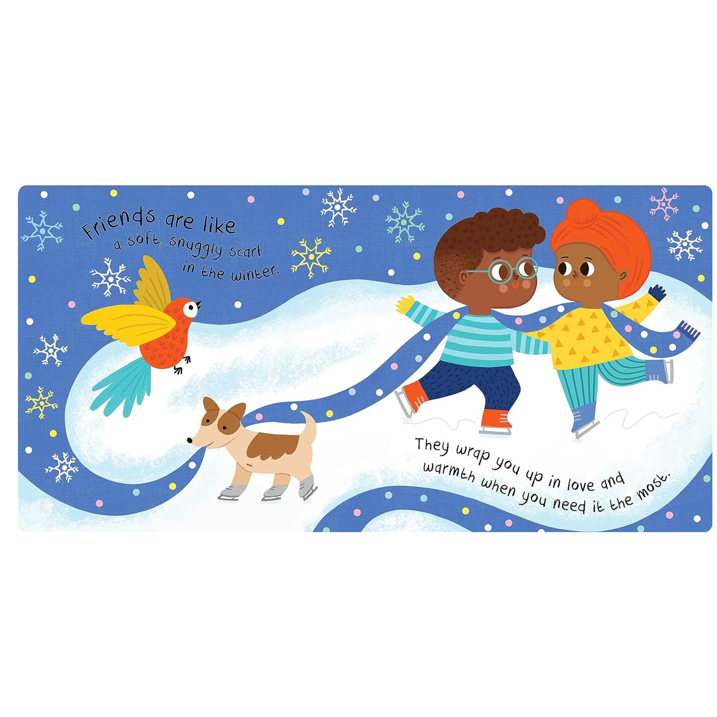 Leah Osakwe'nin canlandırıcı metni, sıcak ve rahat bir atkı gibi hissettiren arkadaşlıktan, iyi bir arkadaşın destansı bir macerada rehber gibi olmasına kadar, arkadaşlığı her türlü harika şeyle karşılaştırıyor. Becky Paige'in eğlenceli ve parlak sanat eserleri, iyi bir arkadaşın önemini ve getirebilecekleri rahatlığı, heyecanı ve mutluluğu hayata geçiriyor.