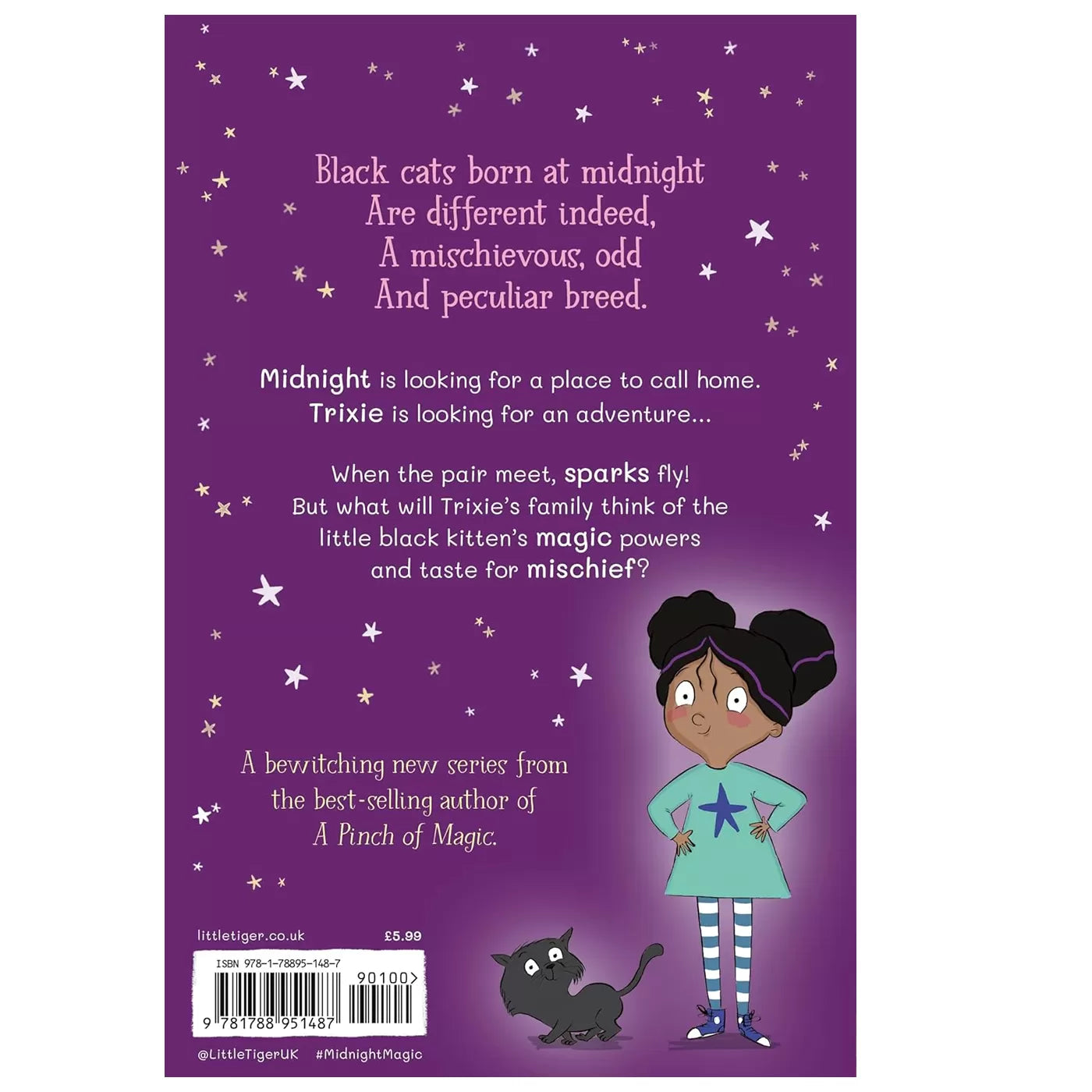 Kışın ortasında bir ahırda üç yavru kedi doğar. İkisi sıradan ama gece yarısında doğan üçüncüsü simsiyah ve bıyıklarından kuyruğuna kadar sihirle dolu, hatta tozlu eski bir süpürgeye bile hayat veriyor! Kardeşleri farelere saldırırken Midnight, süpürge üzerinde uçma becerilerini mükemmelleştiriyor ve annesinin onun büyülü yöntemlerini onaylamadığını fark etmiyor.