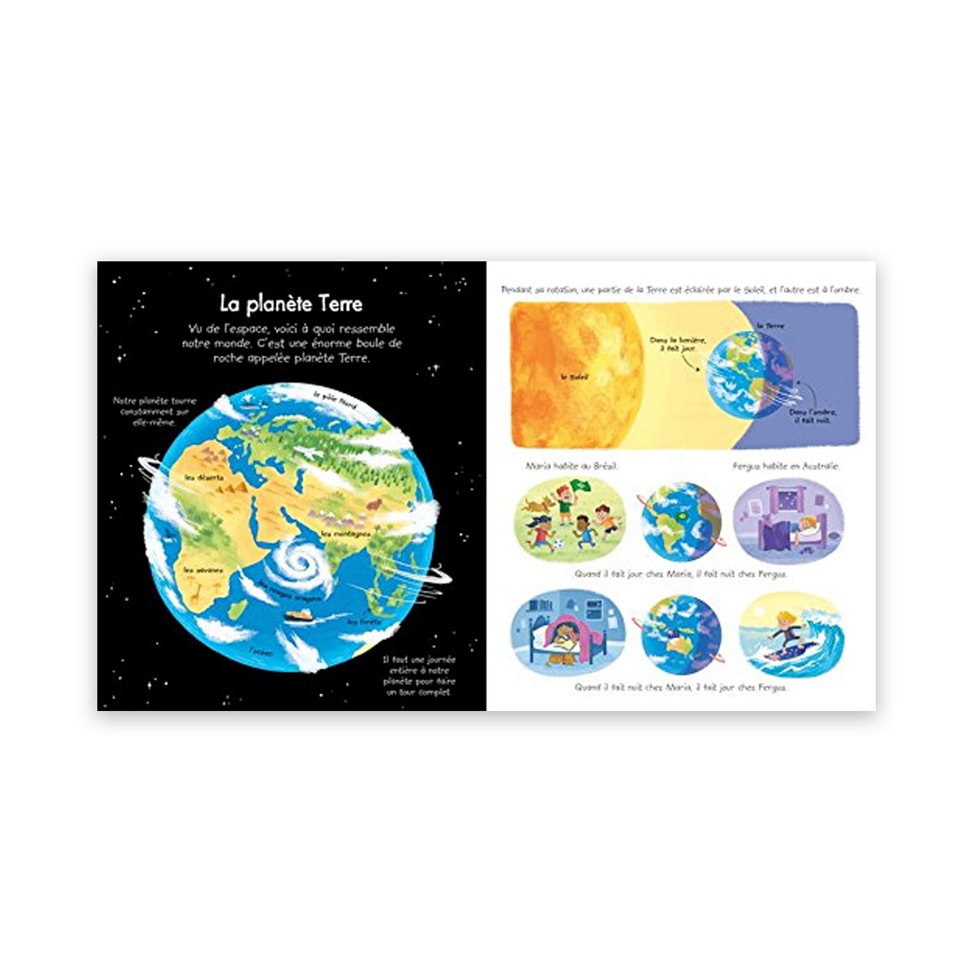 Bu kitap, çocukları içinde yaşadıkları dünyayla eğlenceli bir şekilde tanıştırıyor. Sayfalarında arasında gezinirken; masmavi okyanusları, yemyeşil yağmur ormanlarını ve tozlu çölleri keşfediyor, gece/gündüz ve mevsimler hakkında bilgi ediniyorlar.