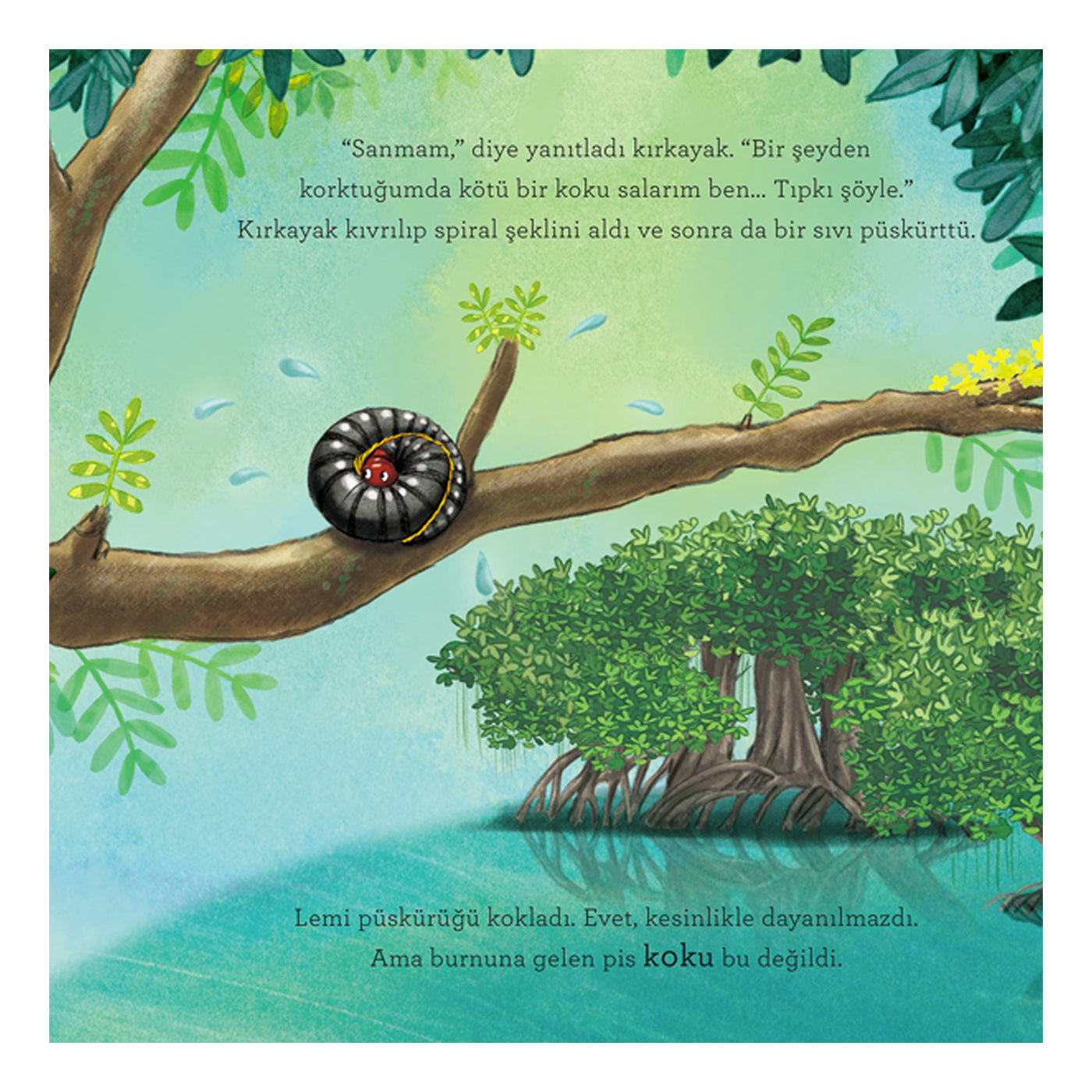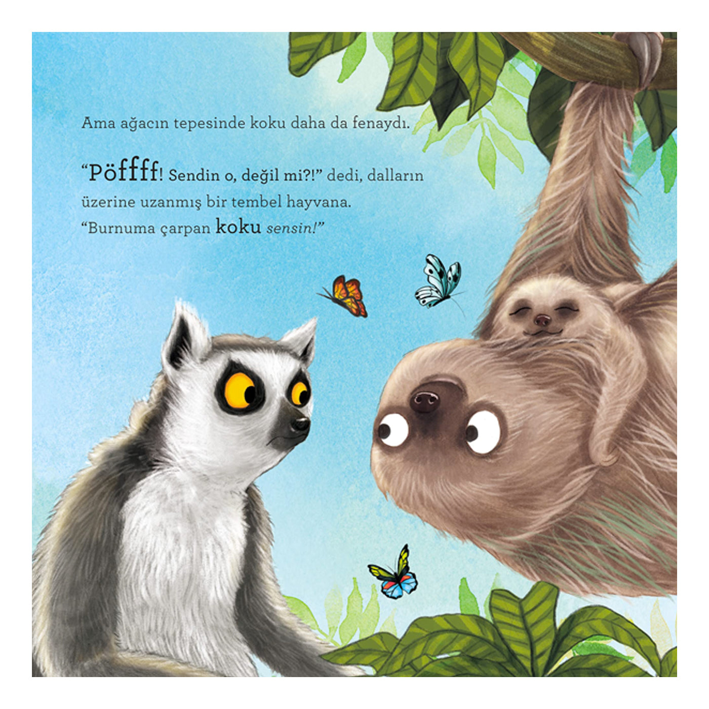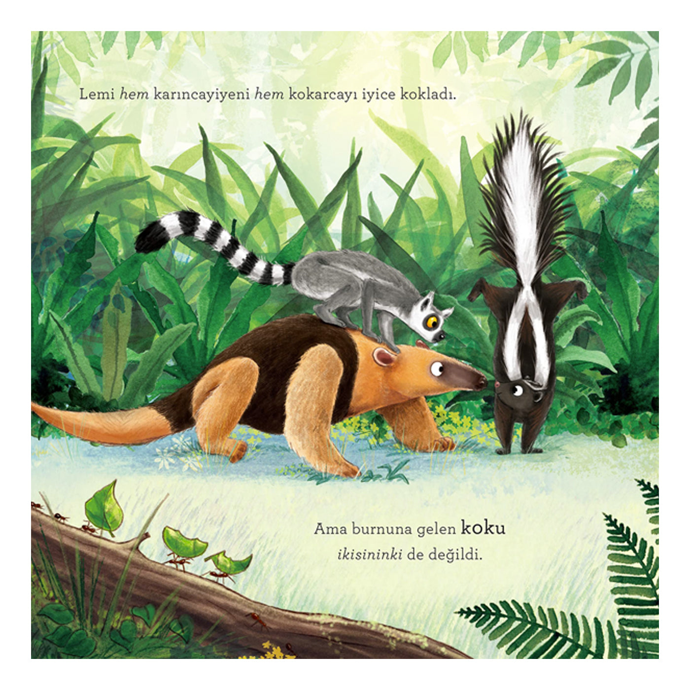 Lemur Lemi Güney Afrika'da harika bir ormanda tatilde... Tam ağaç dallarının arasında uzanmış keyfine bakarken burnuna kötü bir koku geliyor. Bu kokunun hangi hayvandan geldiğini anlamak için ormanda küçük bir yolculuğa çıkıyor. Kırkayaktan hoatzin'e, küçük karıncayiyenden kokarcaya gerçekten kötü koku salan pek çok hayvanla karşılaşıyor. Ama o merak ettiği kokunun kaynağını öğrendiğinde ise çok ama çok şaşırıyor! Waterstones Çocuk Kitapları Ödülü sahibi çizer Nicola O’Bryne ile ödüllü yazar Clare Helen Welsh’in birlikteliğinden ortaya çıkan bu kitap, çocukları kötü kokulu dostlarımızla eğlenceli bir şekilde tanıştırıyor. Kitabın sonunda ise hikâyede adı geçen hayvanlar hakkında ilginç bilgiler ve fotoğraflar yer alıyor.