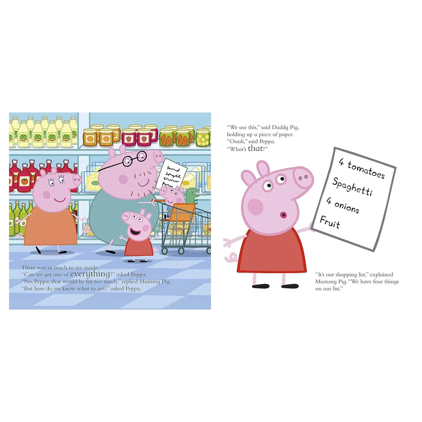 Peppa ve ailesi hep birlikte markete gidiyorlar. Peppa ve George alışveriş yapmayı çok seviyor. Listede yazanları tek tek buluyor ve market arabasına koyuyorlar. Ama o da ne? Kasaya geldiklerinde market arabasından listede olmayan bir şey çıkıyor? Acaba onu market arabasına kim koydu?