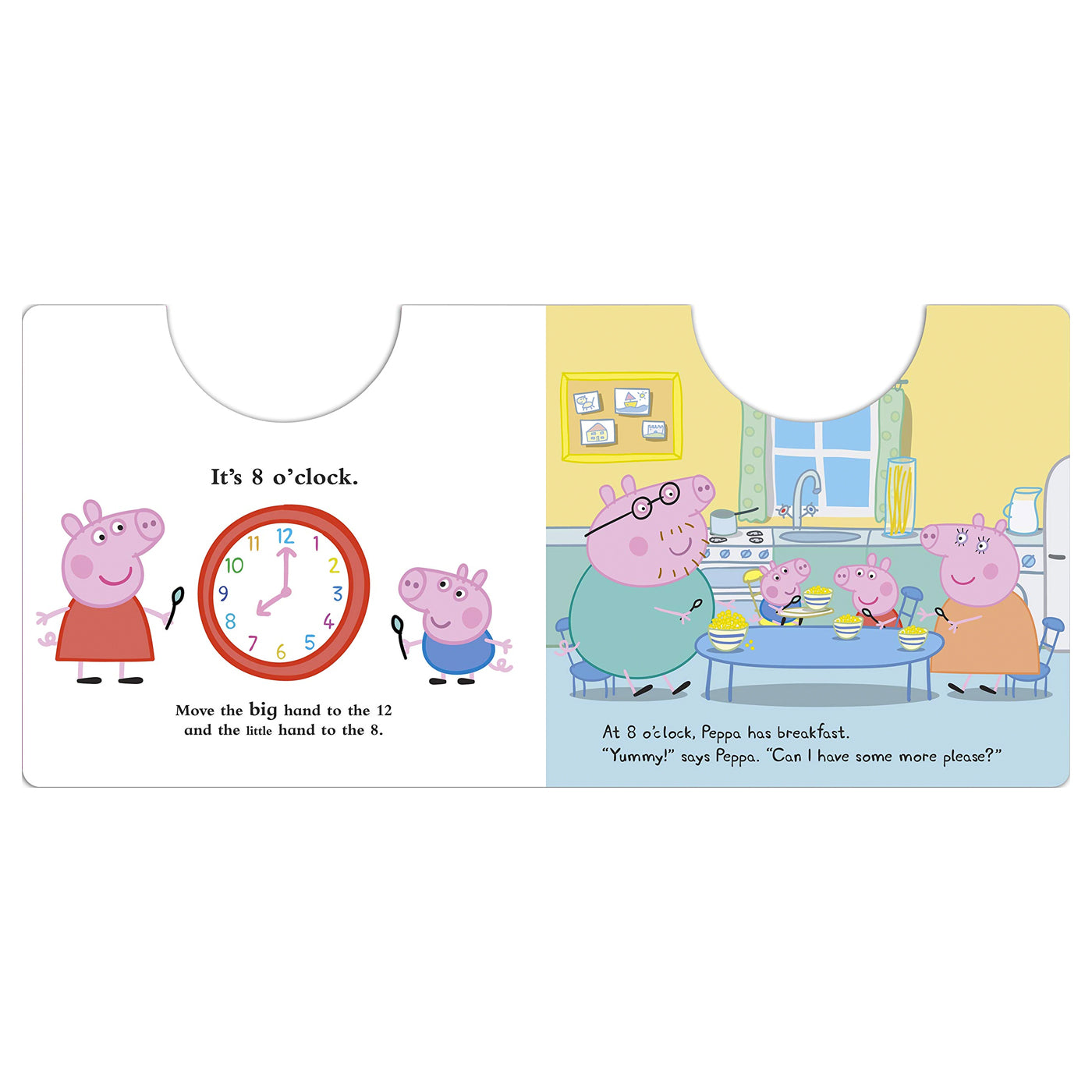 Saatleri eğlenceli bir şekilde öğreten harika bir Peppa kitabı. Kitabın üst kısmında yer alan ve ibreleri hareket edebilen saat ile, Peppa ve George'un bütün bir gününe eşlik edebilirsin.
