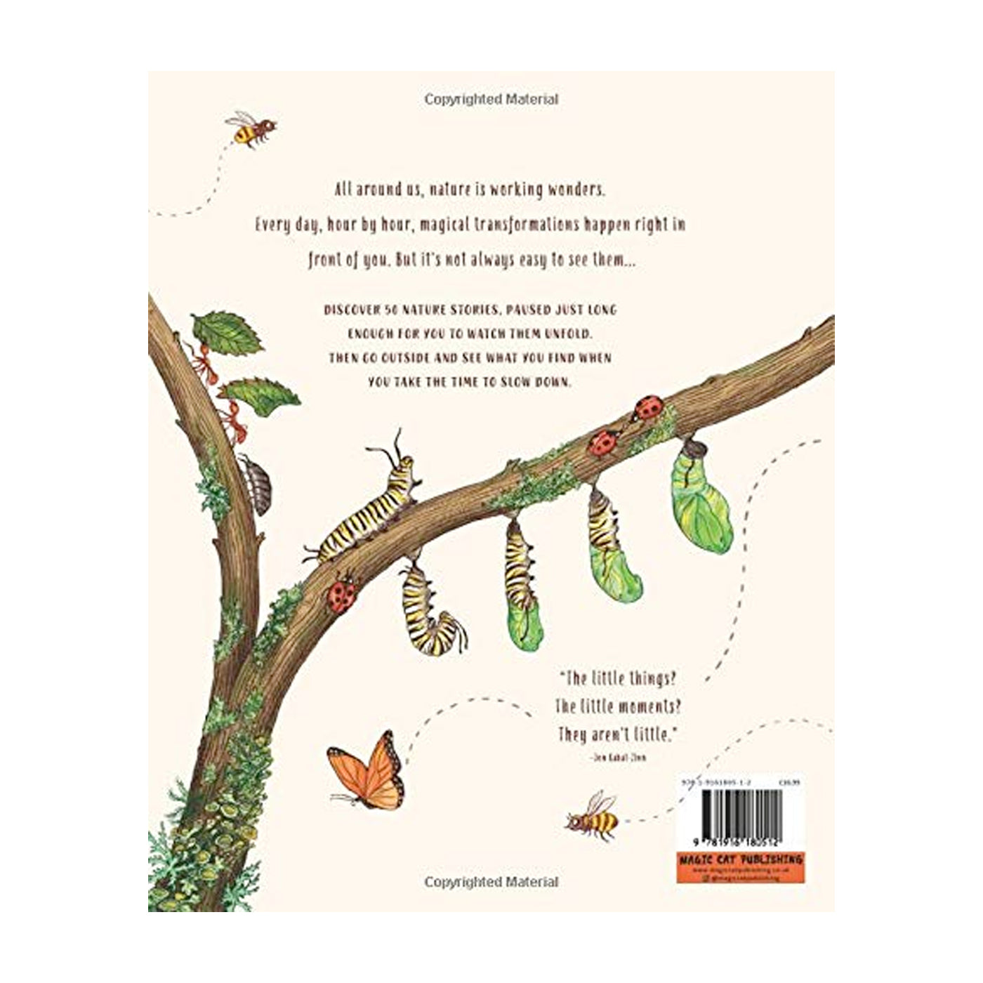 Dünya dönmeye devam ettikçe, etrafımızdaki doğal yaşam da büyümeye devam ediyor. Her gün, saat saat, sihirli dönüşümler aslında tam da önümüzde yaşanıyor. Ama onları görmek her zaman kolay olmuyor… İşte bu kitap, 50 doğa hikayesi ile o büyülü anlara tanık olmanızı sağlıyor. Şimdi dışarı çıkma ve biraz "yavaşladığınızda" neler bulduğunuzu görme zamanı!