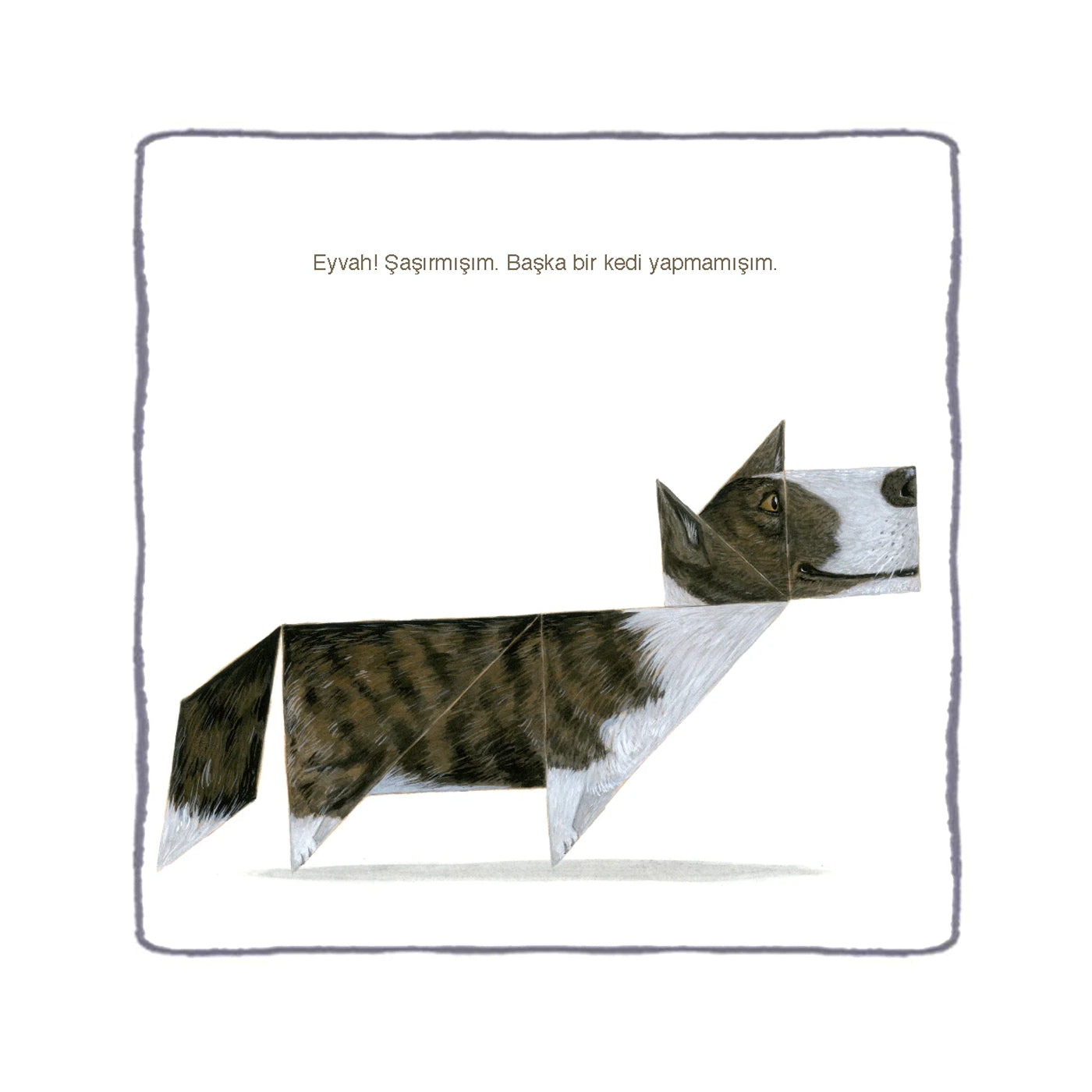 Tangramla oynayan bir çocuk, kendine bir kedi yapıyor. Kedinin canı çok sıkılınca bu defa başka bir kedi yapmaya çalışıyor. Ama bir bakıyor ki kedi yerine köpek yapmış. Diğer denemelerinde farklı hayvanlar ortaya çıkıyor... Bu eğlenceli kitap çocukları tangram dünyası ile tanışmaya davet ediyor. Çocuklar kitapla beraber gelen yedi tangram parçası ile bu komik öyküye eşlik edebiliyor.