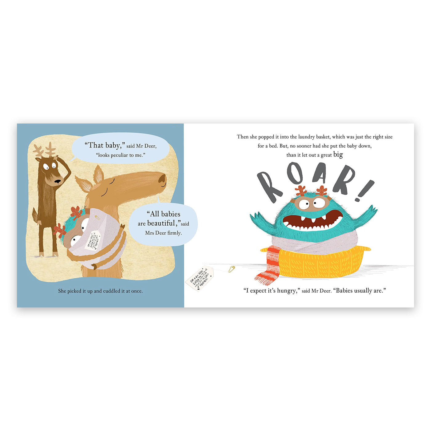 Bay ve Bayan Geyik bir bebeğe bayılırlar ve bir gün kapının eşiğinde boynuzlu küçük bir bohça bulurlar. Bayan Geyik, dileklerinin gerçekleştiğini düşünürken; Bay Geyik bebeğin çok ama çok tuhaf olduğunu düşünür. Bebek kükremeyi kesmeyince aileden ve arkadaşlarından tavsiye isterler ama sorunu fark etmek akıllı yaşlı Ayıcık'a düşer: Bu bir bebek değil küçük bir canavardır.