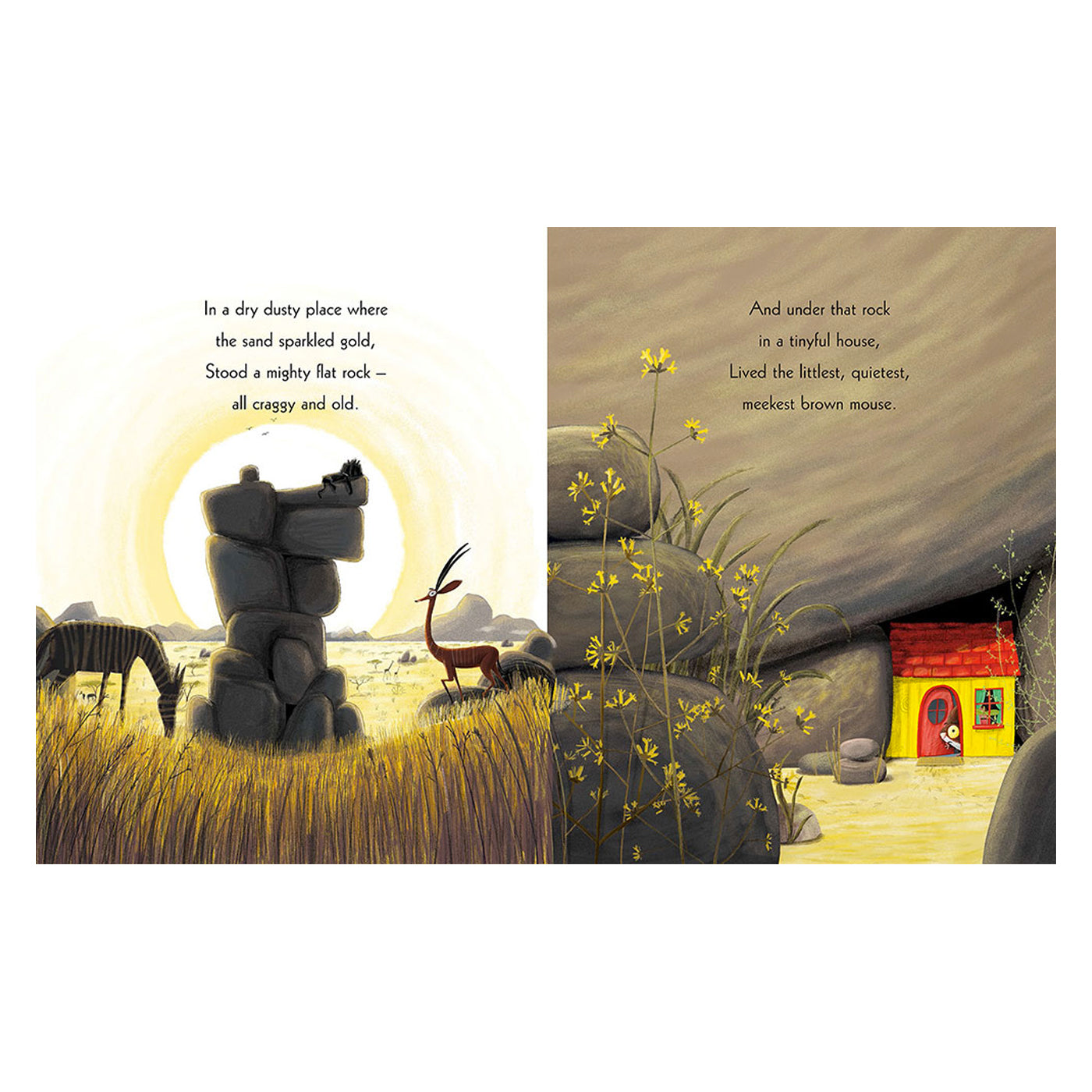 Kumun altın gibi parıldadığı kuru, tozlu bir yerde, sarp ve güçlü, düz bir kaya vardı. O kayanın altında, küçücük bir evde dünyanın en küçük, en sessiz, en uysal faresi yaşıyordu. Diğer hayvanlar tarafından görmezden gelinmekten bıkan bu küçük fare aslan gibi kükremek istiyordu. Ama onun da keşfettiği üzere, en iri, en otoriter insanlar bile bazen korkarlar ve en küçük yaratıklar bile bir aslanın kalbine sahip olabilir!