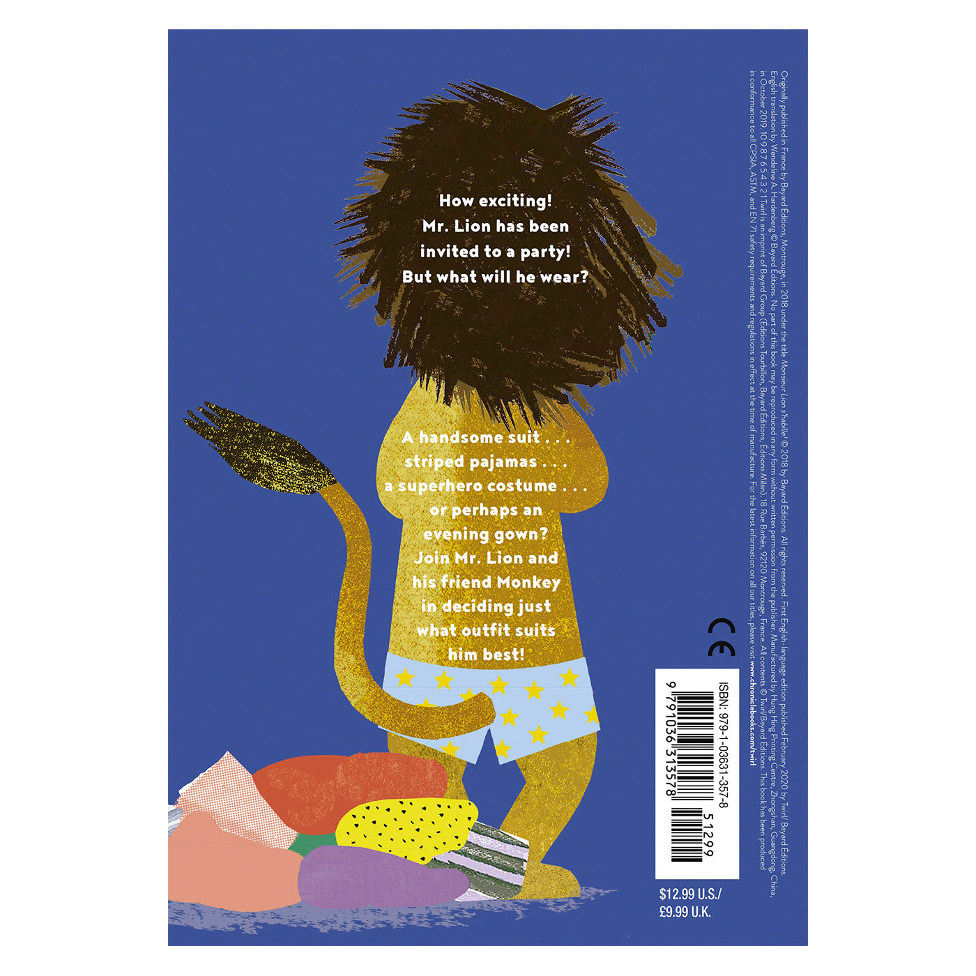 Mr. Lion bir partiye davet edildi. Bu yüzden çok heyecanlı. Ama partide ne giyecek? Haylaz arkadaşı maymun pek çok öneride bulunuyor. Belki Mr. Lion güzel bir takım elbise giyebilir ya da çizgili pijama... Ya da bir süper kahraman kostümü. Belki de bir gece elbisesi? Ünlü yazar ve illüstratör Britta Teckentrup'un bu eğlenceli kitabı, özel kesim sayfaları okuyucuları Mr. Lion'un gardırobunda hayali bir yolculuğa çıkarıyor. Çocuklar giderek çılgınlaşan kıyafetlere kahkahalarla gülecek ve önemli olanın ne giydiğiniz değil, her zaman kendiniz olmak olduğunu öğrenmek için Bay Aslan'a katılacaklar.
