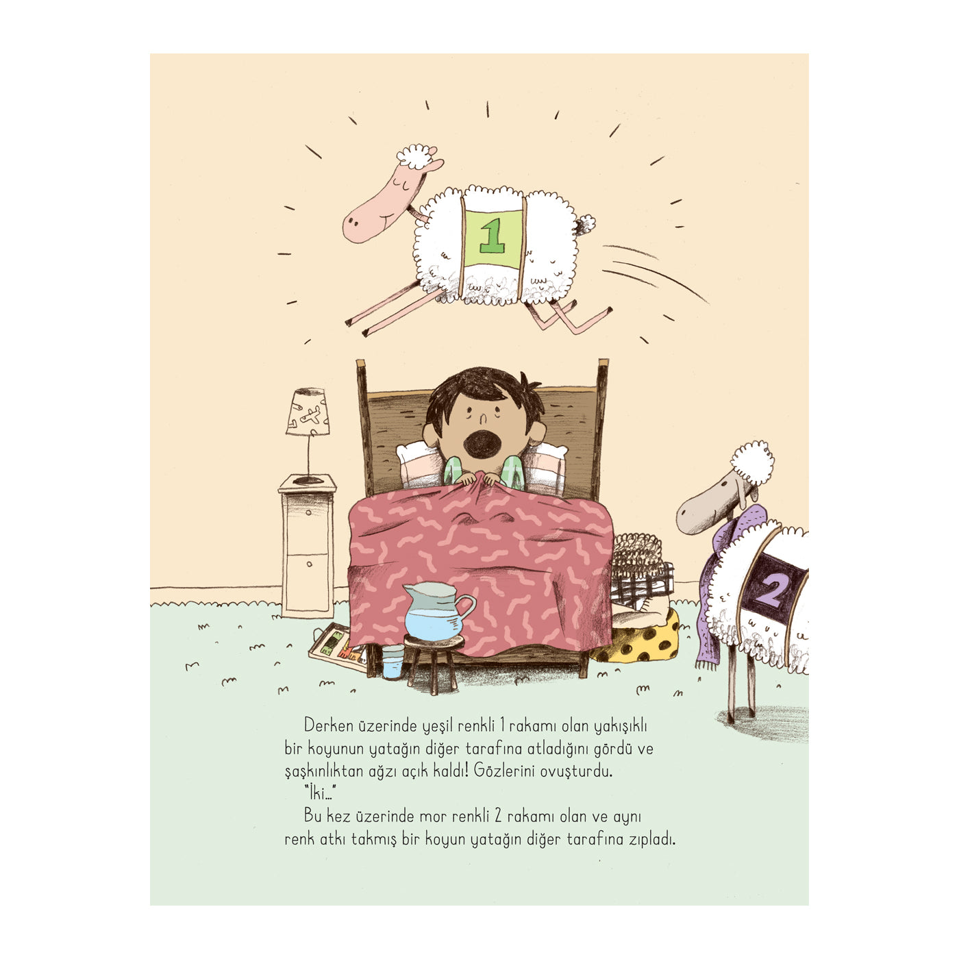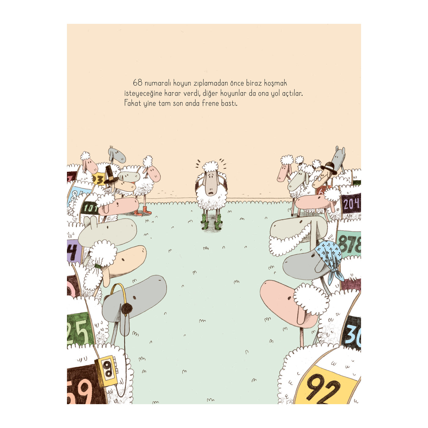 Can pijamalarını, hikayeleri, aromalı diş macununu yani yatmaya dair her şeyi çok seviyor. Sevmediği tek şeyse uyumak. Uyumamak için de elinden geleni yapıyor. Annesi ona koyun saymayı öneriyor. Koyunlar Can'ın hayalinde yarış arabası gibi yatağının üstünden atlarken sıra 68 numaraya geldiğinde bir duraklama yaşanıyor. 68 numarasının atlamadan önce bir bardak suya ihtiyacı var. Sonra banyoya gitmesi gerekiyor. Sonra koşu ayakkabılarını giymek istiyor. Acaba bu durum bir şekilde sona erecek ve Can uykuya dalabilecek mi? Uyku direnci olan çocuklara ilham olacak harika bir kitap.