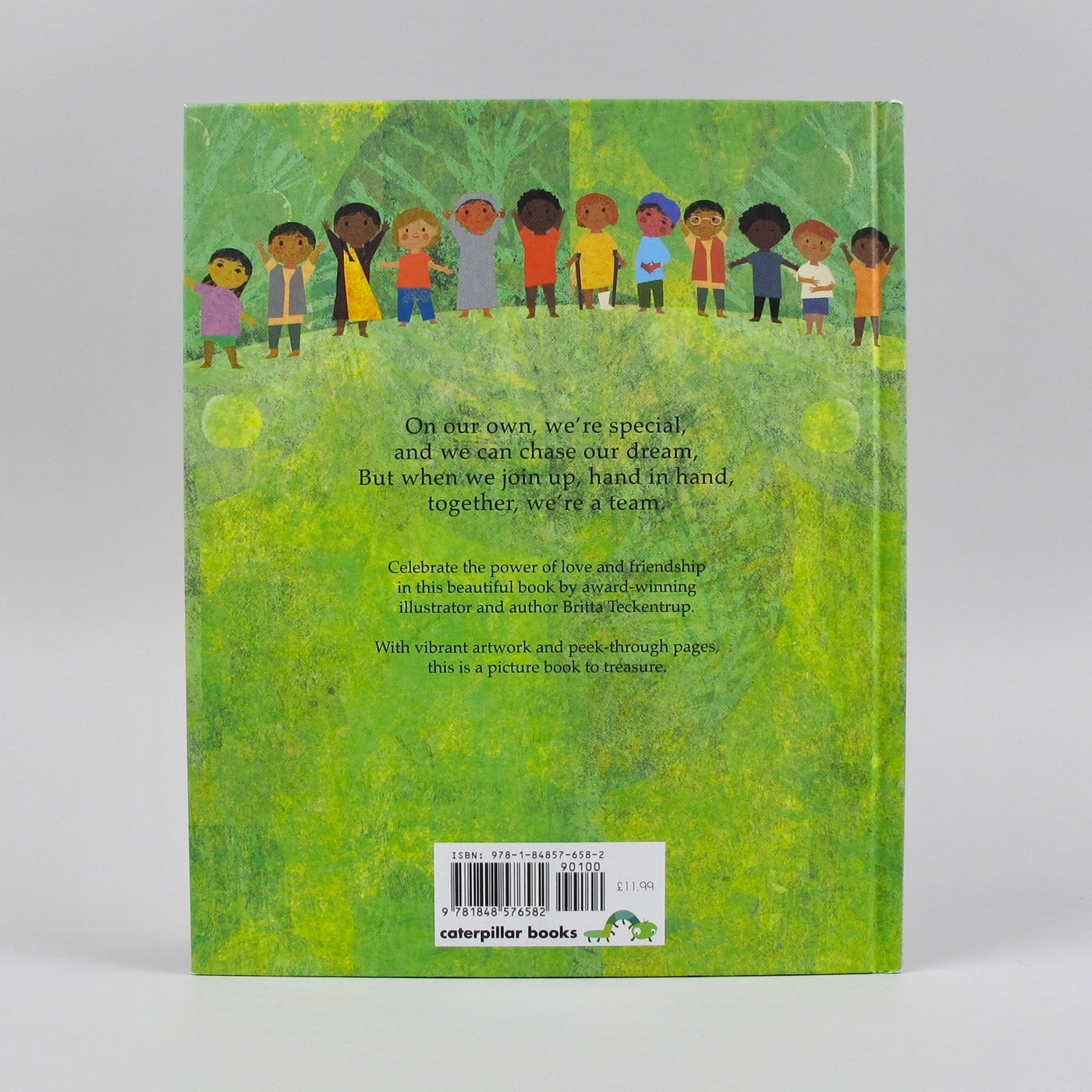 Ödüllü illüstratör ve yazar Britta Teckentrup, her birimiz farklı özelliklere sahip olmasak da, birlikte olmanın gücüne ve önemine değiniyor. Çizimleri, şiirsel anlatımı ve özel kesimli sayfaları ile bu kitap, sevginin ve arkadaşlığın ne kadar önemli kavramlar olduğunun altını çiziyor.