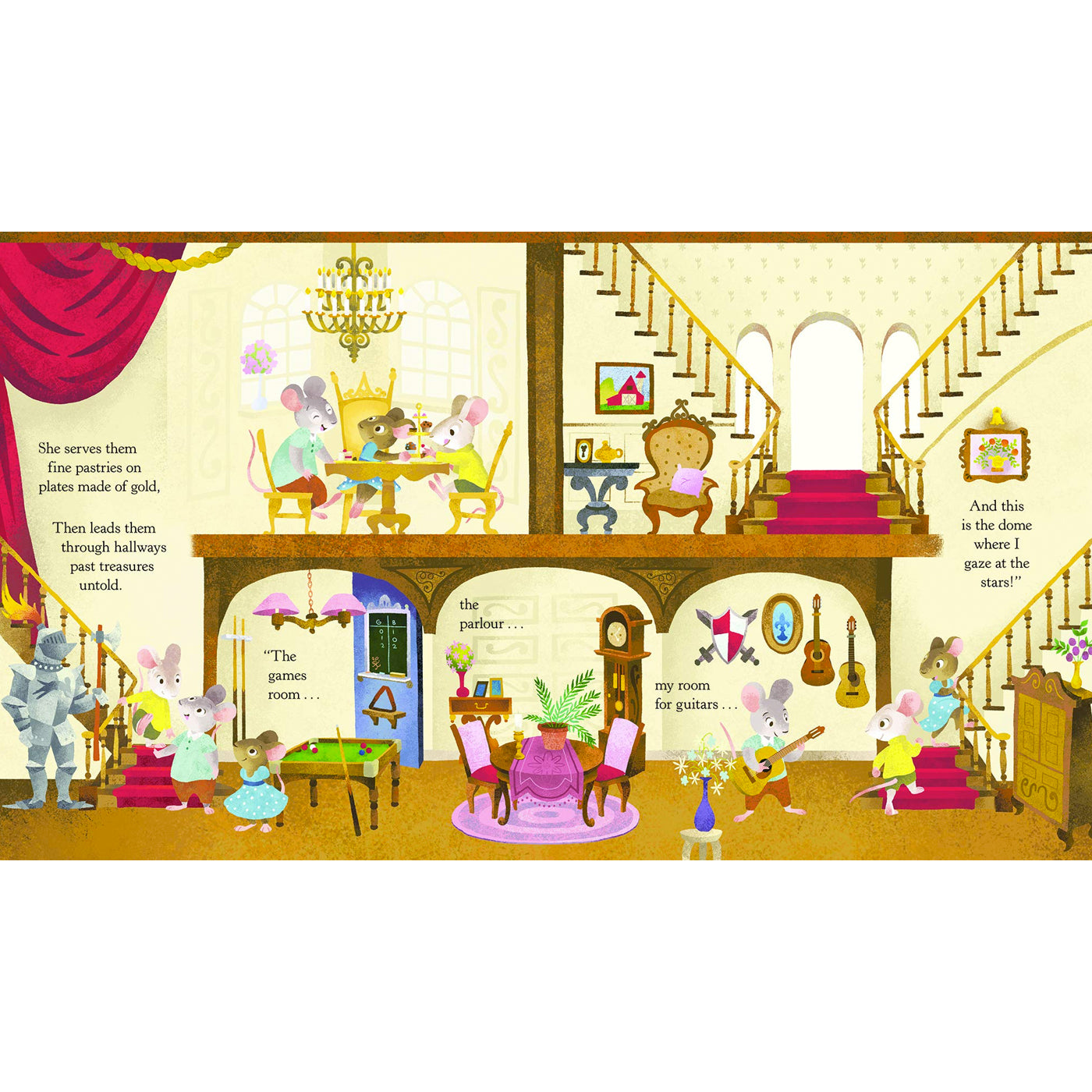 Bu kitabın içinde üç farklı fare evi var... Kitabın kesikli sayfaları ve kapakçıklarıyla bu sevimli evleri keşfe çıkıyoruz. Üç evden biri, diğerlerinden biraz farklı. Orada zengin fareler oturuyor ve evleri çok daha gösterişli... Bu durum küçük fareleri biraz kıskandırsa da, aslında mutluluğun sahip olduklarına değer vermekte olduğunu anlıyorlar.