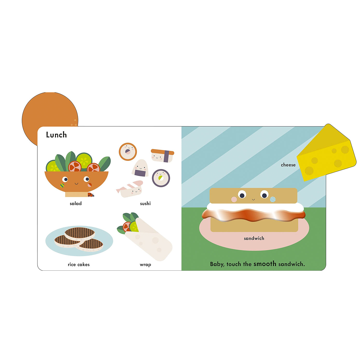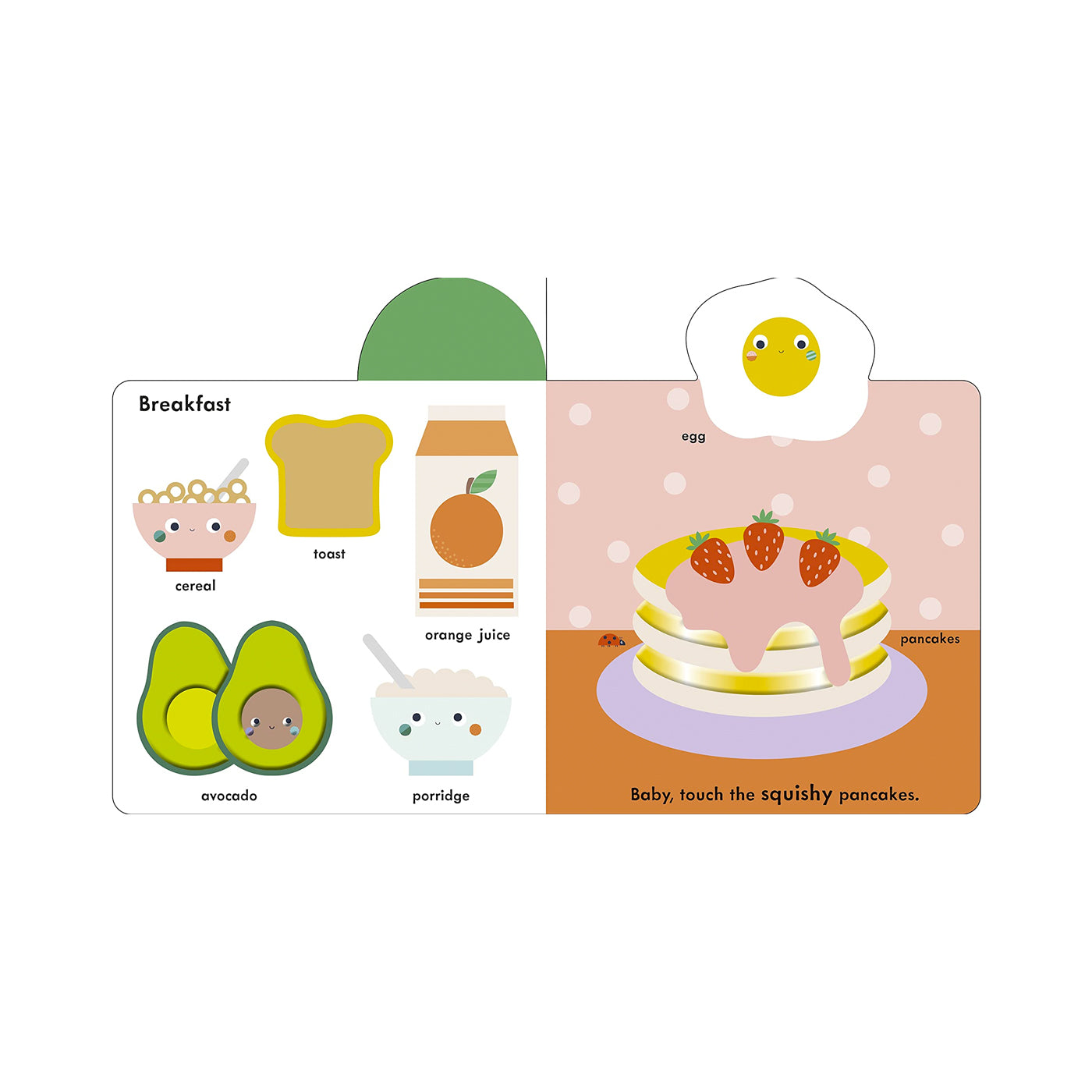 Besinler temalı bu etkileşimli kitap, dokunsal alanları, parlak ve kontrast renkleri ile bebeklerin duyusal gelişimine destek oluyor. Sağlıklı besinlerin betimlendiği sayfalardaki dokulu yamalar ise bebeklerin keşfetme duygusunu teşvik ediyor.