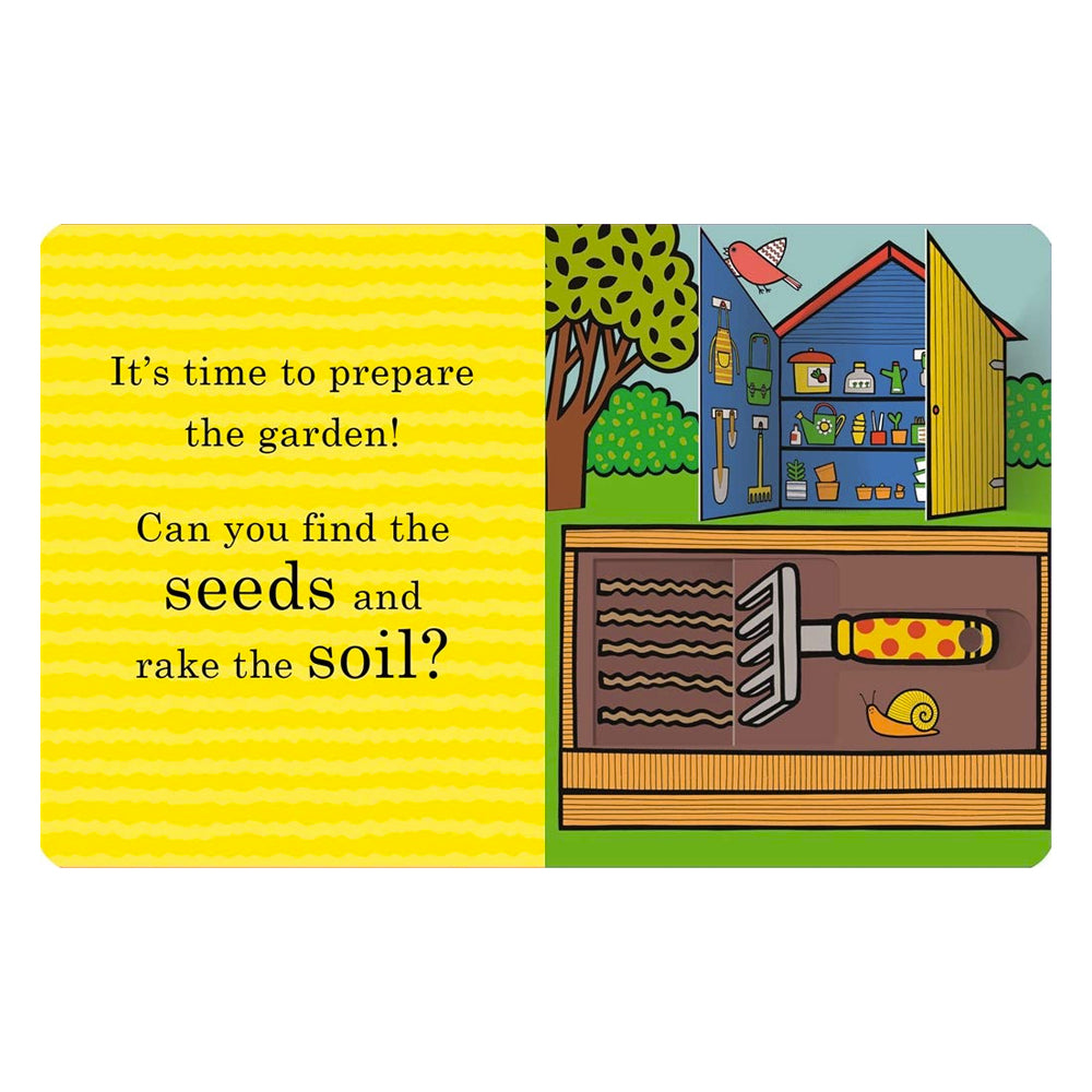 Bahçeyi hazırlama zamanı! Tohumları bulup toprağı tırmıklayabilir misin? Bu eğlenceli kitapta küçükler, kaydırıcıları ve kapakçıkları kullanarak ilk kelimeleri öğreniyor. Her sayfa, beğenilen sanatçı Jane Foster'ın karakteristik canlı çizimleriyle yeni bir senaryo sunuyor.