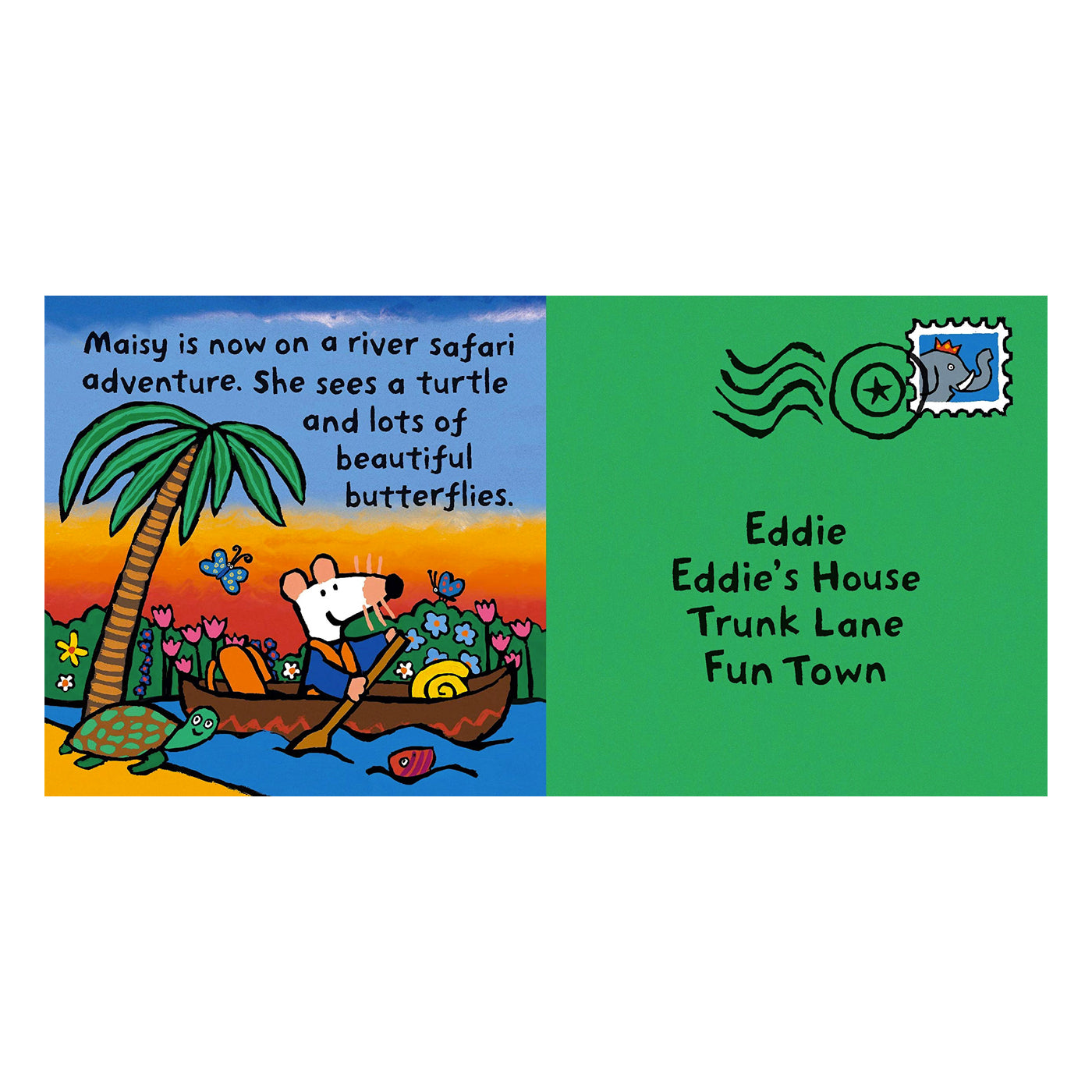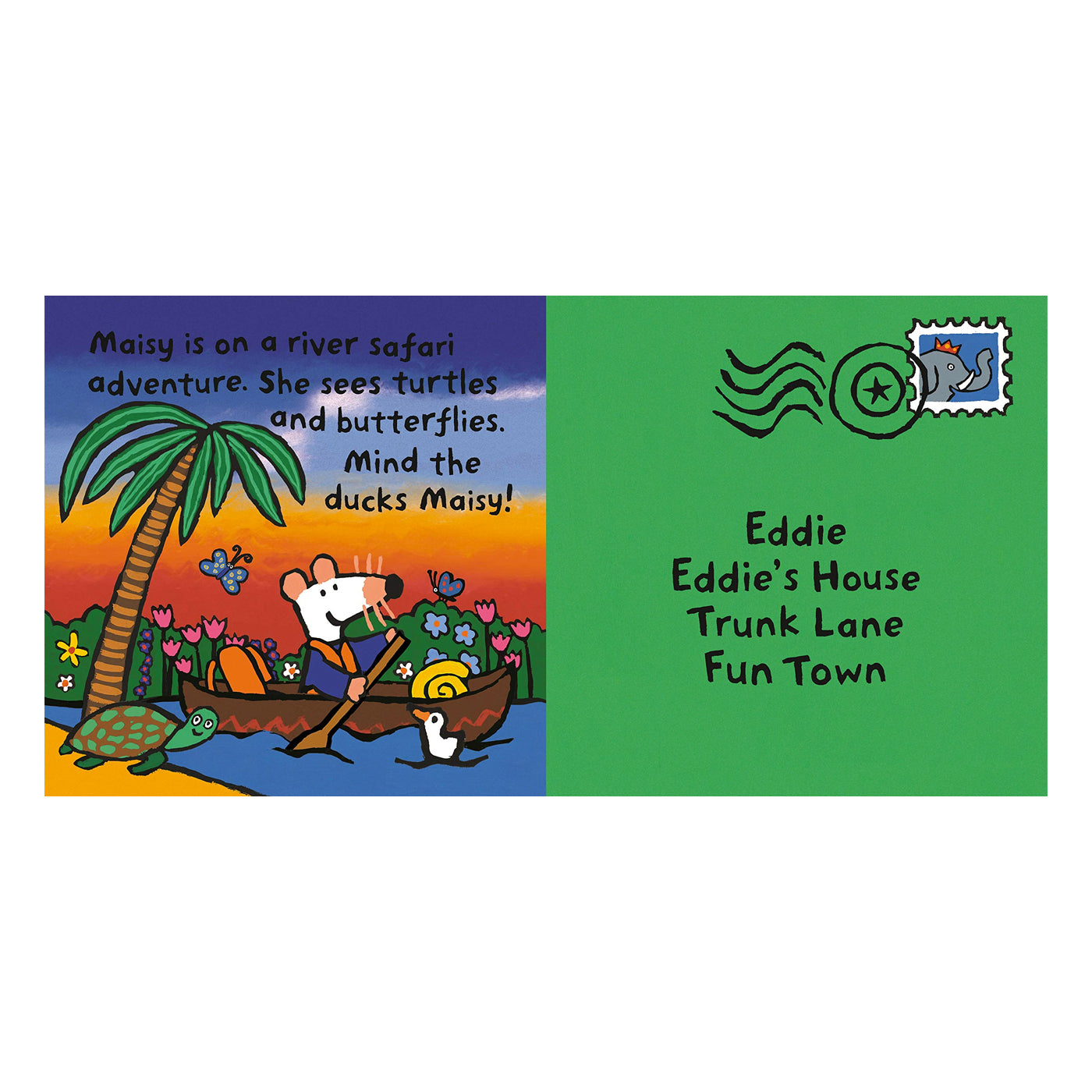 Maisy tatilde! Bir dağa tırmanırken, bir pazar yerini ziyaret ederken, nehir boyunca kürek çekerken, lunaparka giderken ve sahilde dinlenirken Maisy'nin heyecan verici bir yolculuğa si de katılın. Her macera için Maisy, arkadaşlarına birer mektup gönderiyor… Bir tanesi sizin!Bu hikaye mektuplar, hediyelik eşyalar, oyunlar ve sadece size özel bir kartpostal içeren altı gerçek zarf içeriyor!