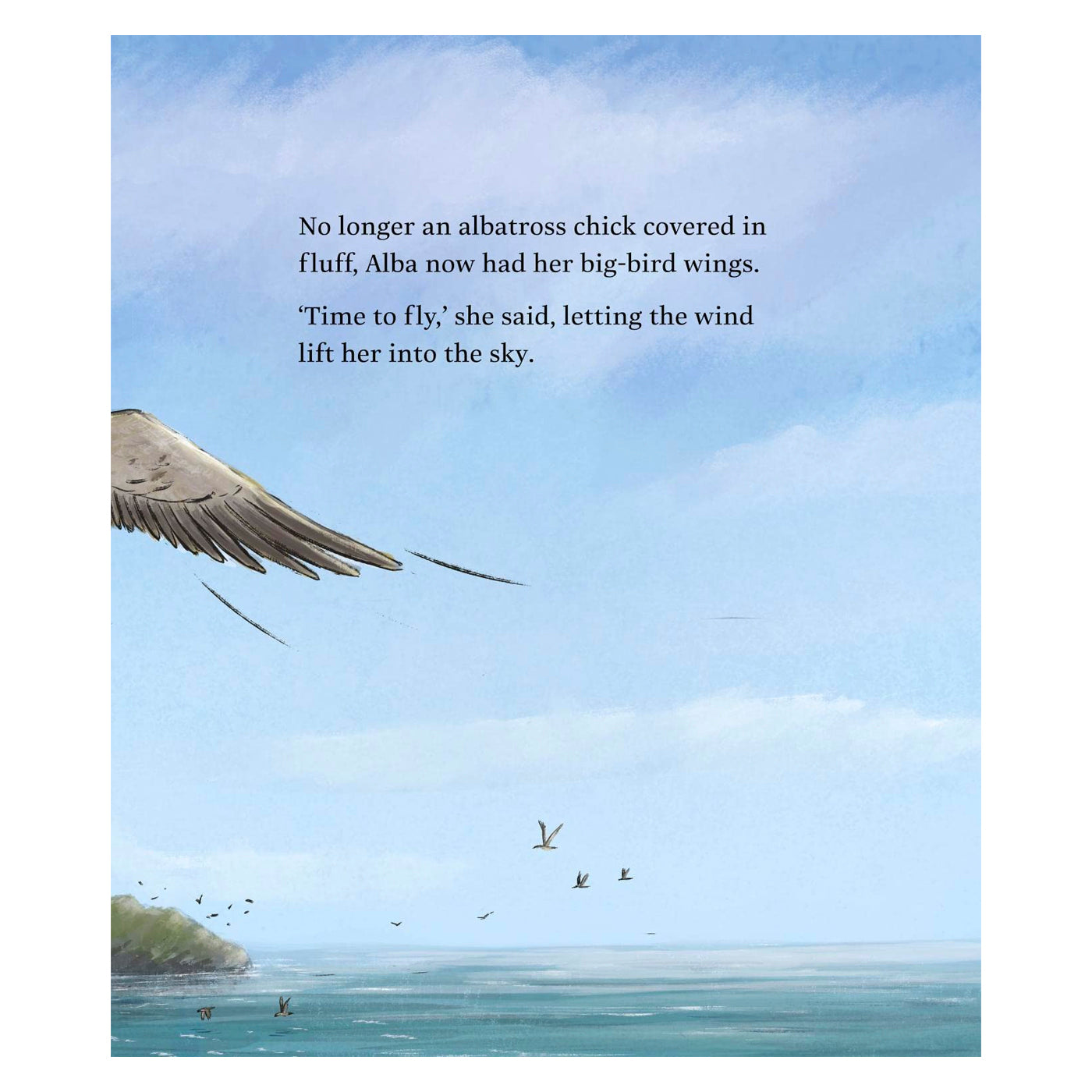 Genç albatros Alba, hayatının yolculuğuna çıkmak için yuvasından ayrılır. Ancak büyük bir dalga onu düşürüp kanadını kırdığında, buzlu bir kıyıda yapayalnız kalır. Sonra bir penguen belirir, ardından bir başkası ve bir başkası gelir, ta ki tüm koloni Alba'nın yanında olana kadar. Yeni arkadaşları arasında Alba'nın morali hızla yükselir ve uzun, karanlık kış boyunca kanadı yavaş yavaş iyileşir. Güneş nihayet ufukta göründüğünde, Alba sonunda tekrar uçmayı başarır, ancak penguen sürüsünün ortasında kendisine gösterilen nezaketi asla unutmaz.