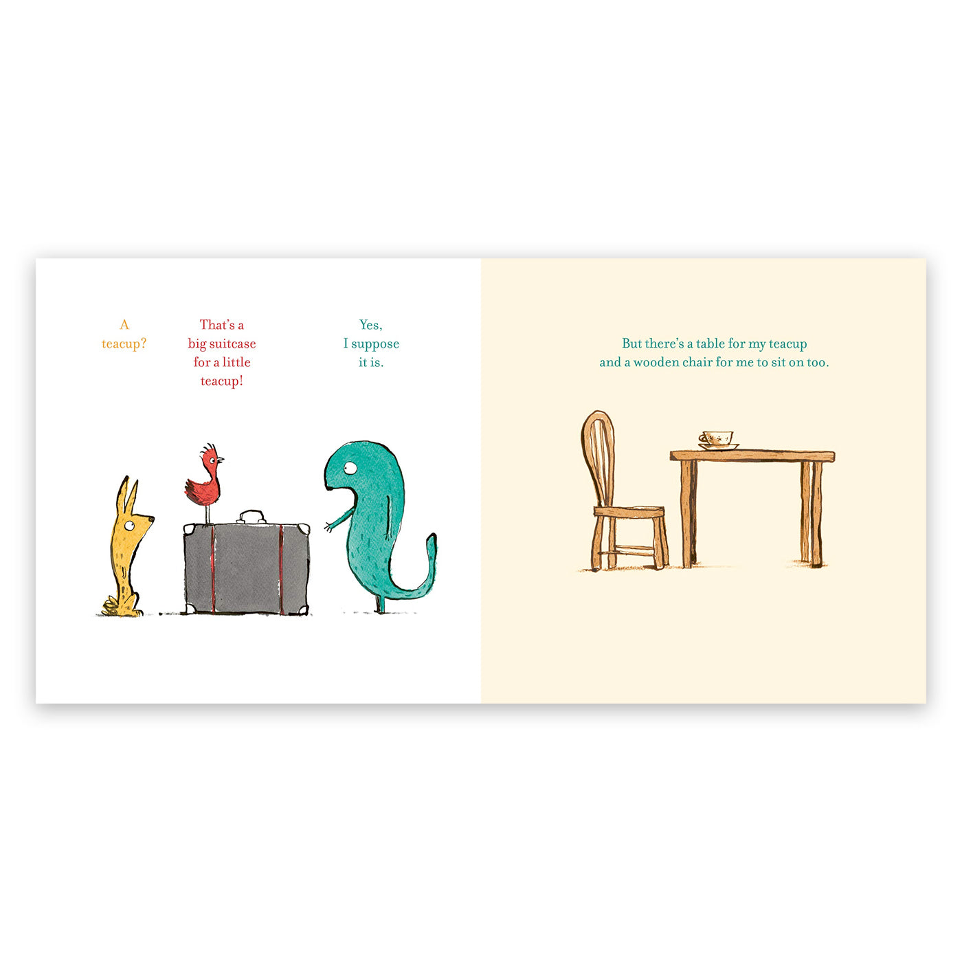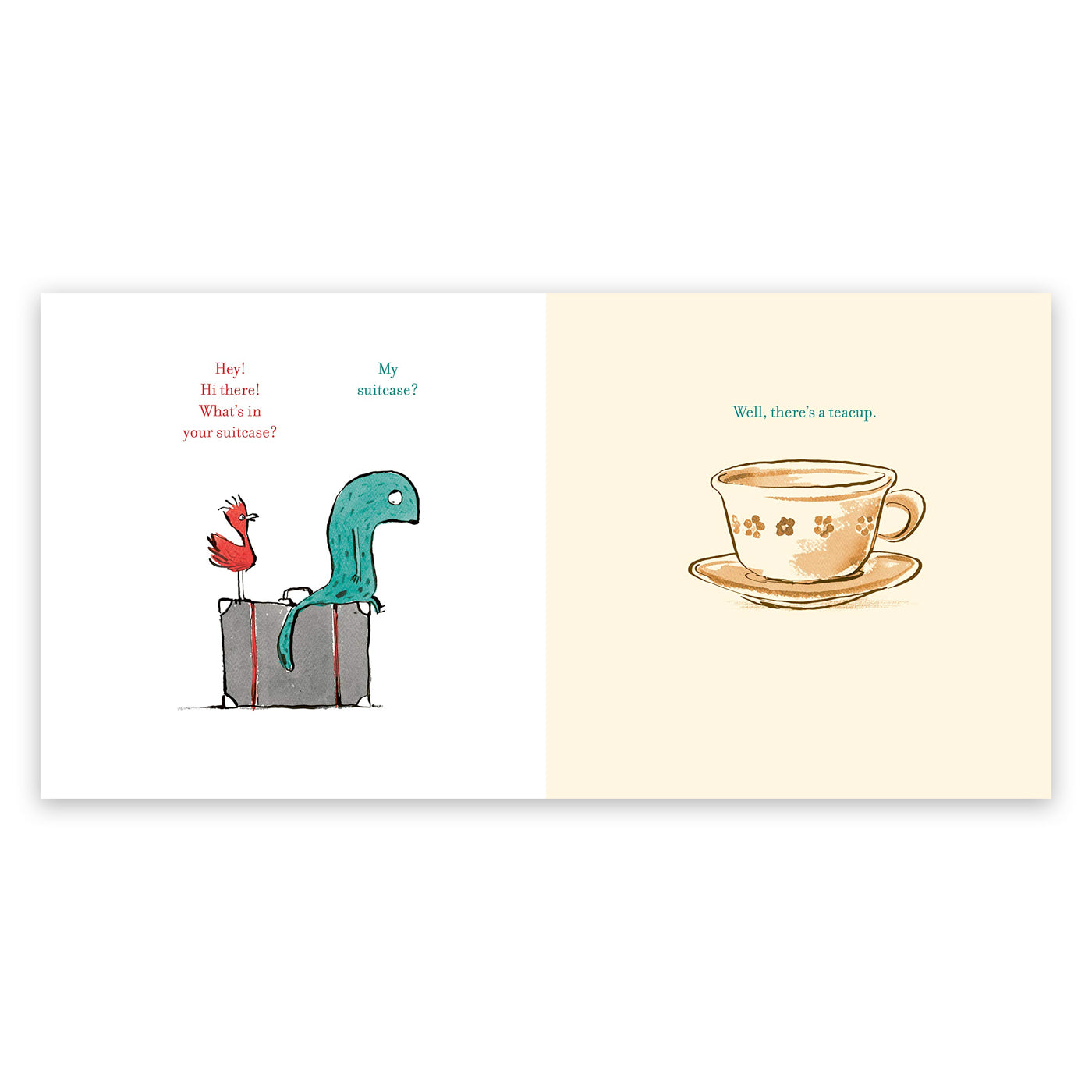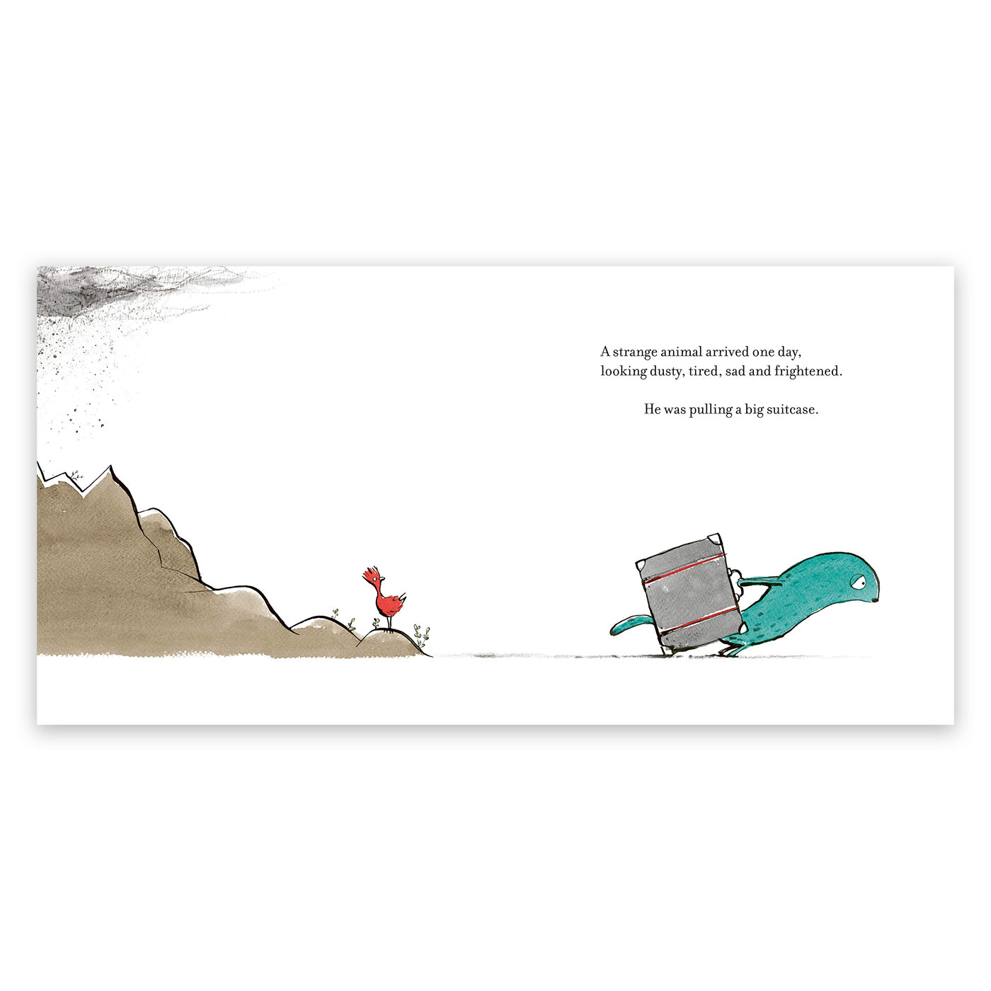 Garip görünüşlü bir hayvan elinde büyük bir bavulla geldiğinde diğer hayvanlar onu merak ediyor. O bavulun içinde ne olabilir ki? Çay fincanı mı? Belki. Bir masa ve sandalye mi? Belki. Bütün bir ev ve ağaçlarla dolu bir tepe mi? Bu yabancı yalan söylüyor olmalı! Ancak hayvanlar bavula girip çok özel bir fotoğraf keşfettiklerinde, garip yaratığın neler yaşadığını anlamaya başlarlar ve birlikte onun için çok özel bir karşılama hediyesi hazırlarlar.