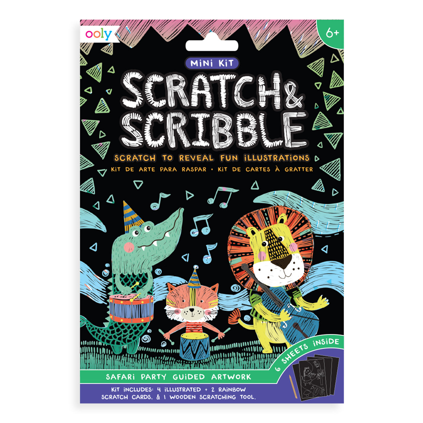 Bu safari temalı sanat kartlarındaki sevimli hayvanların gökkuşağı renklerini ortaya çıkarmak için yapmanız gereken tek şey yönergeleri takip etmek ve kartları kazımak. Hareket halindeyken bile yanınızda taşımaya olanak sağlayan boyutu ile bu mini kazıma sanat kitleri, çocuklar için seyahatleri daha eğlenceli hale getiriyor. Her sette 4 adet çizimli kartın yanı sıra aynı zamanda kendi tasarımlarınızı yaratmanız için 2 boş kart da bulunuyor. Setle beraber gelen ahşap kalemi kullanarak gökkuşağı renklerini ortaya çıkarın!