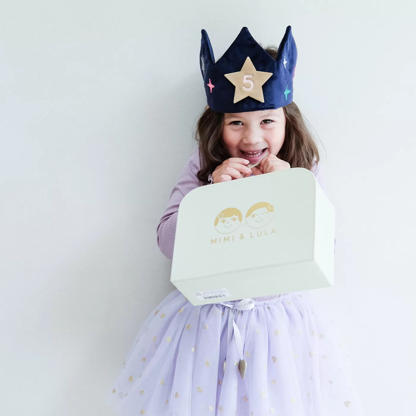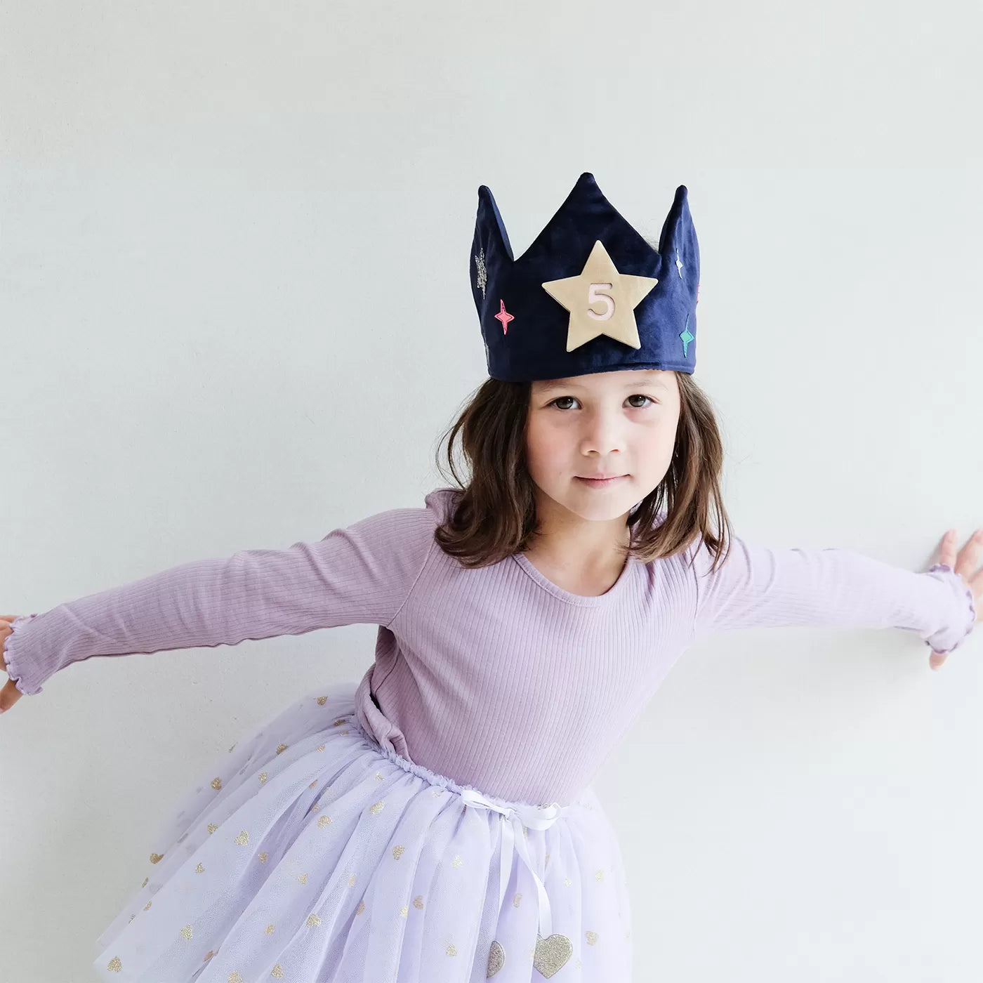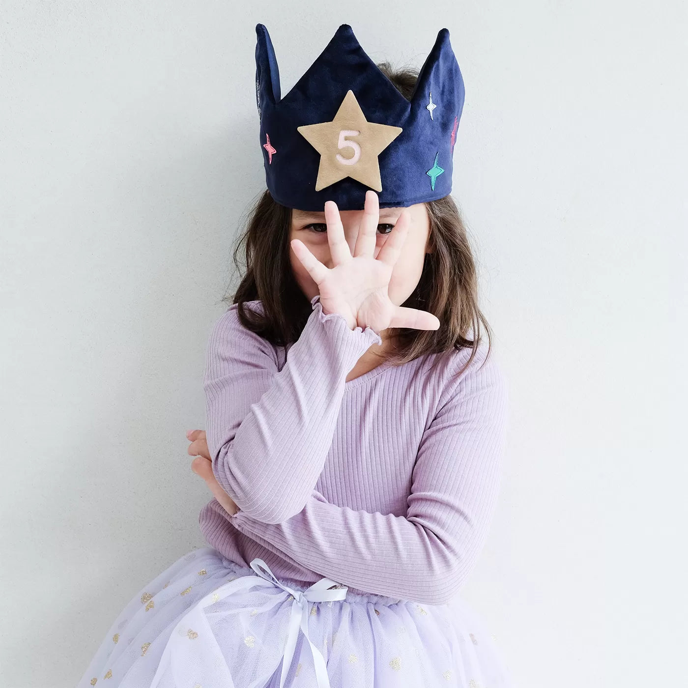 Bu harika doğum günü tacıyla tanışın! Bu lüks yumuşak kadife taç, on adet değiştirilebilir metalik altın numaralı yıldızla birlikte gelir ve 12 yaşına kadar olan doğum günlerine ona eşlik edebilir.