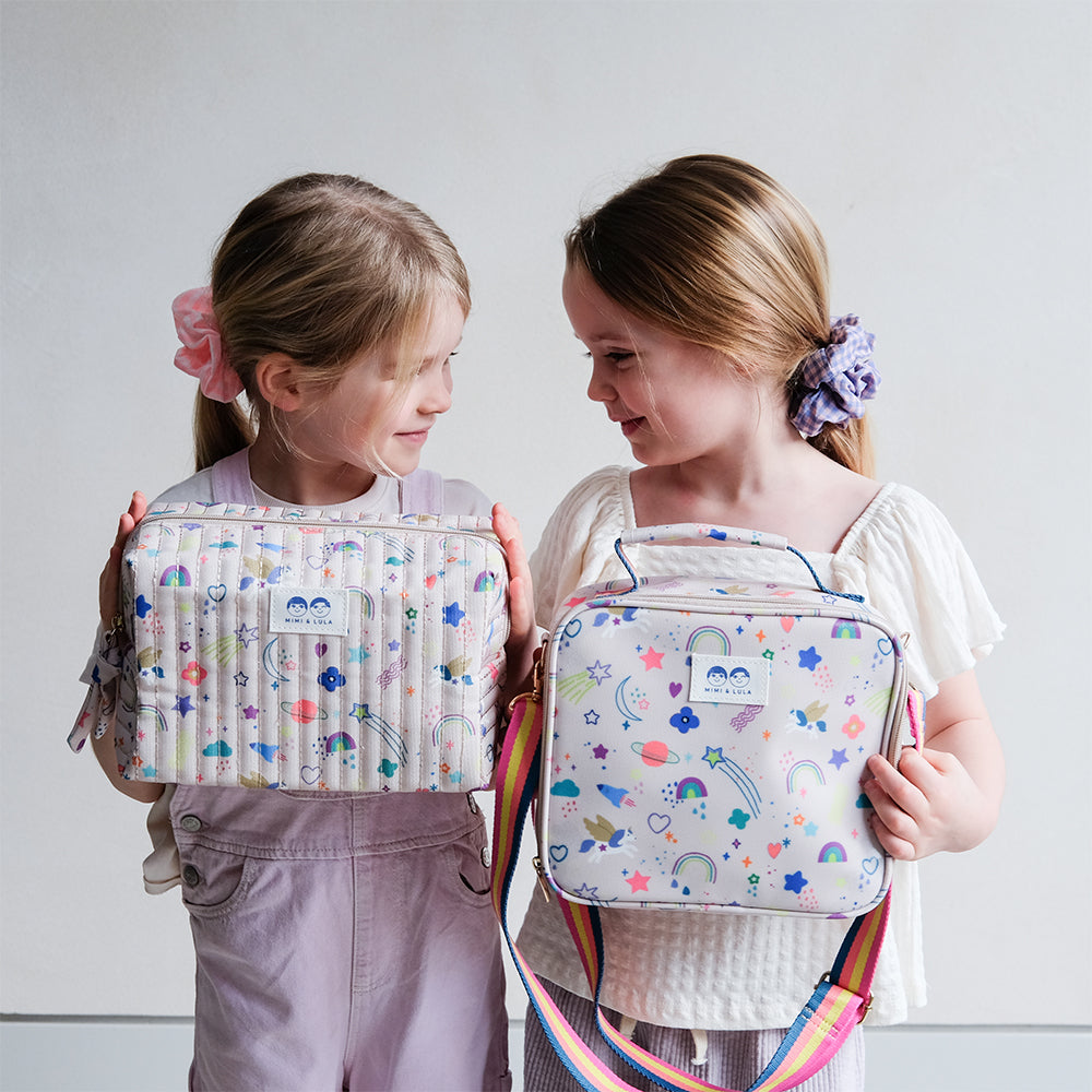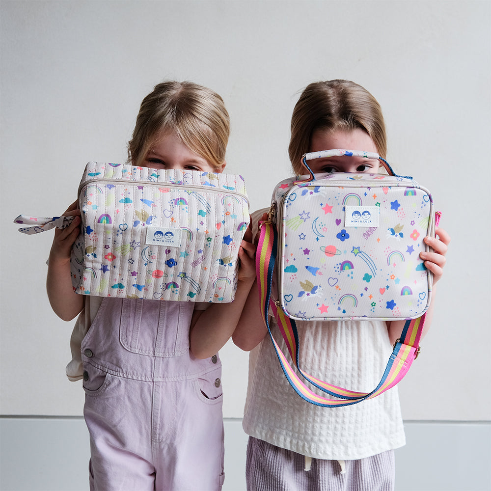 Öğle yemeklerini, çocukların bayılacakları beslenme çantasıyla büyülü hale getirin! Mimi & Lula Dreamland Beslenme Çantası, süper tatlı tek boynuzlu at baskısına sahiptir. Yiyecekleri daha uzun süre serin ve taze tutmak için silinebilir yalıtımlı folyo astarı bulunur.