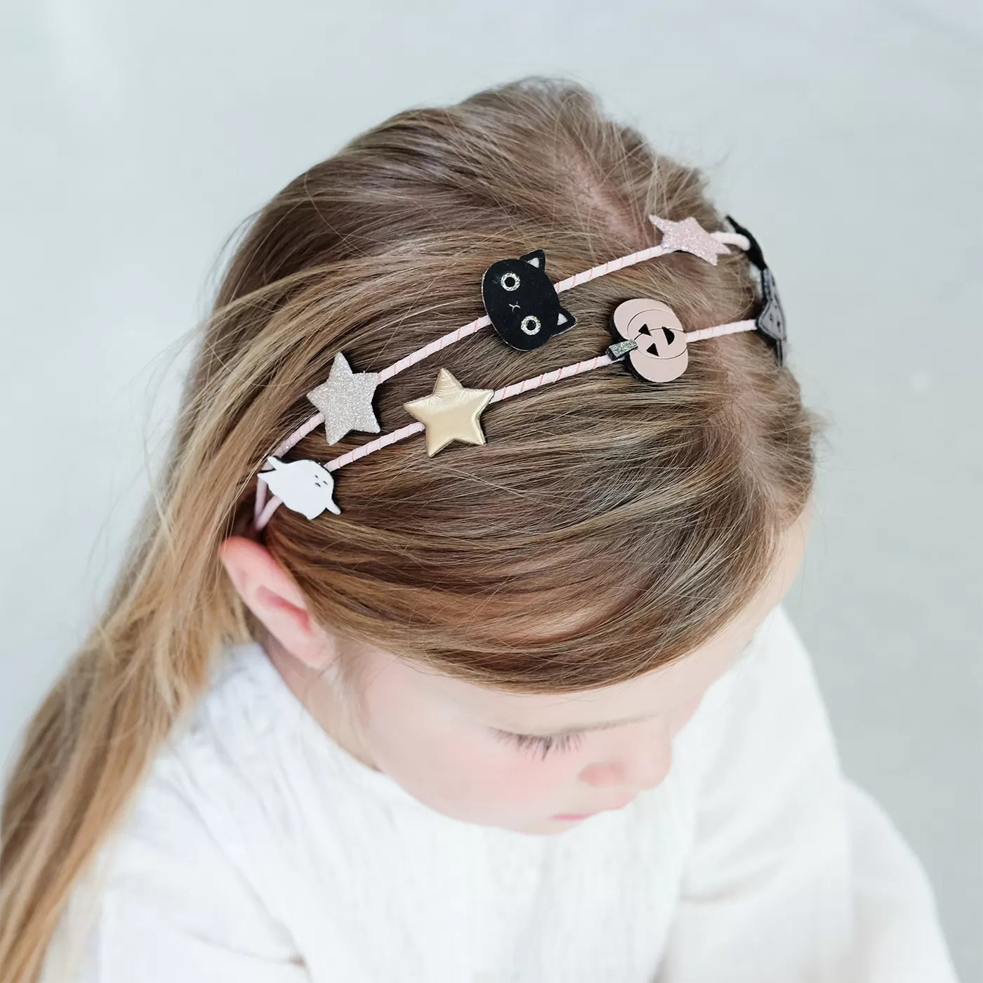 Siyah kediler, hortlaklar ve yıldızlarla bezeli bu taç, Cadılar Bayramı ve kostüm partileri için harika bir hediye seçeneği.
