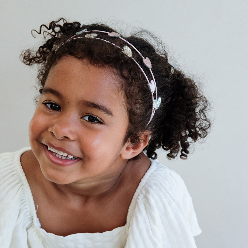 Mimi & Lula Heart Double Alice Taç, yumuşak ve rüya gibi renk paletiyle her saç stiline tatlı ve eğlenceli bir dokunuş katıyor. Şık kalp detaylarıyla süslenen bu taç, 3-10 yaş arası çocukların günlük ve özel görünümüne mükemmel uyum sağlar.