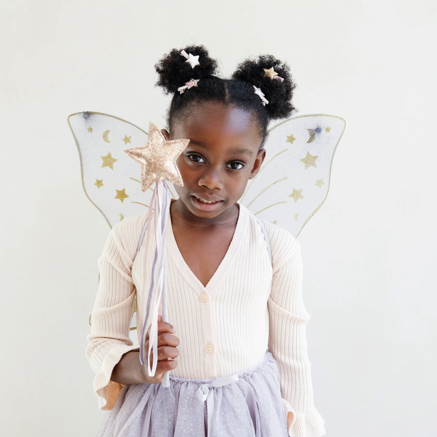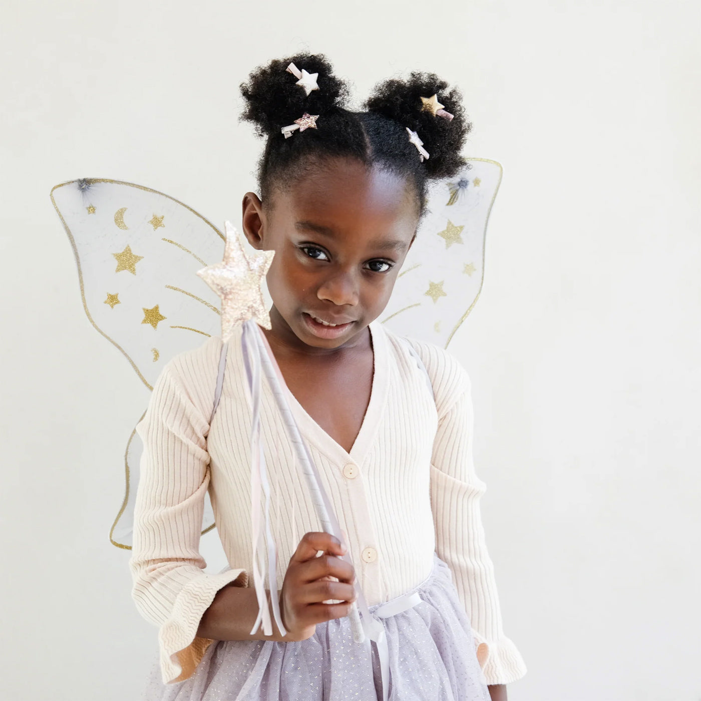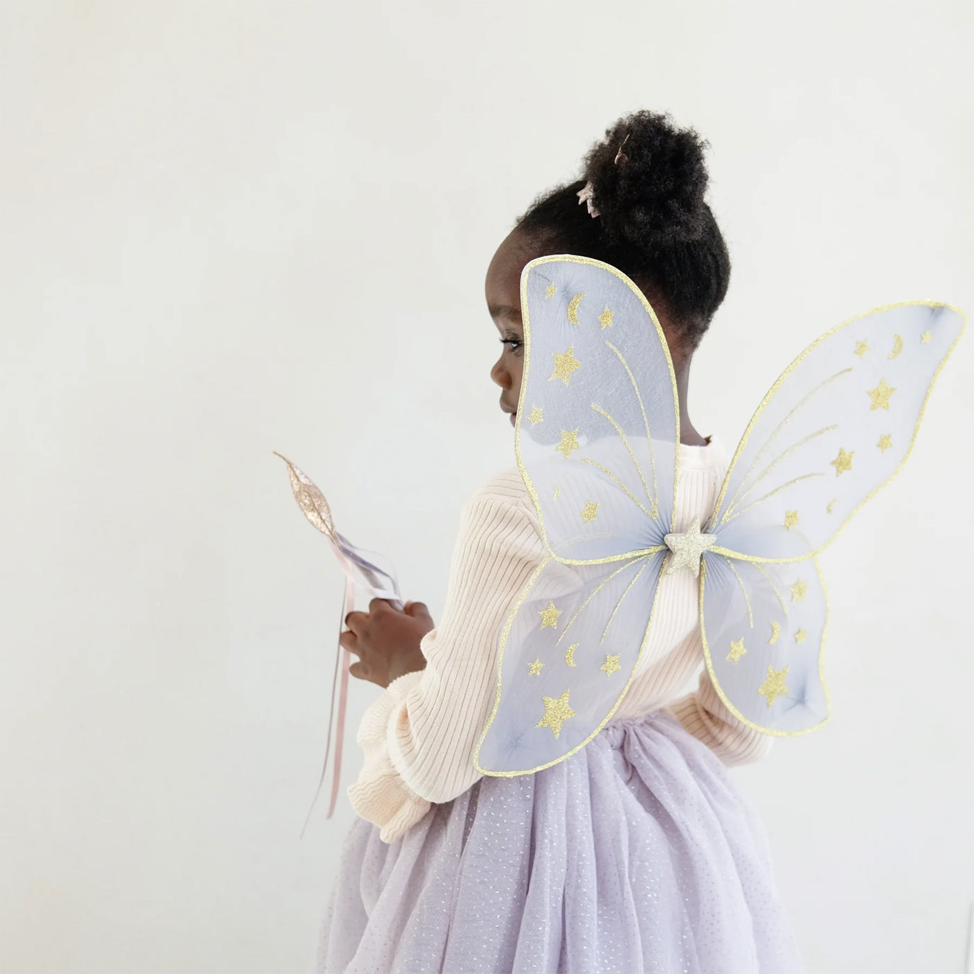 Yaratıcı oyunları teşvik etmek için bu güzel kanatlardan daha iyi bir yol olabilir mi? Altın parıltılı aylar ve yıldızlarla bezenmiş kanatlar, altın parıltılı kenarlar ve yine altın parıltılı dogulu yıldızı ile özel günler için de harika bir hediye seçeneği.
