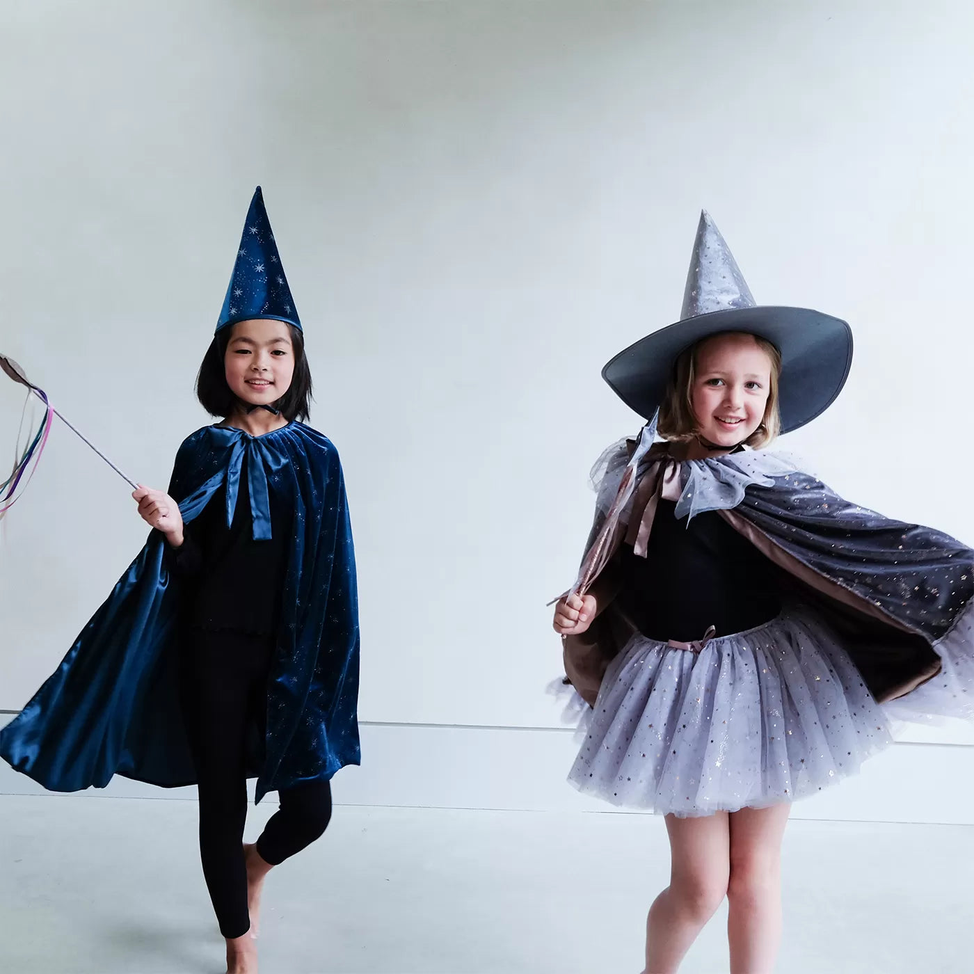 Lüks turkuaz kadifeden yapılmış ve gümüş yıldız takımyıldızlarıyla süslenmiş bu büyülü ve gizemli şapka, kostüm partileri ve rol oyunları için mükemmel bir hediye seçeneği.