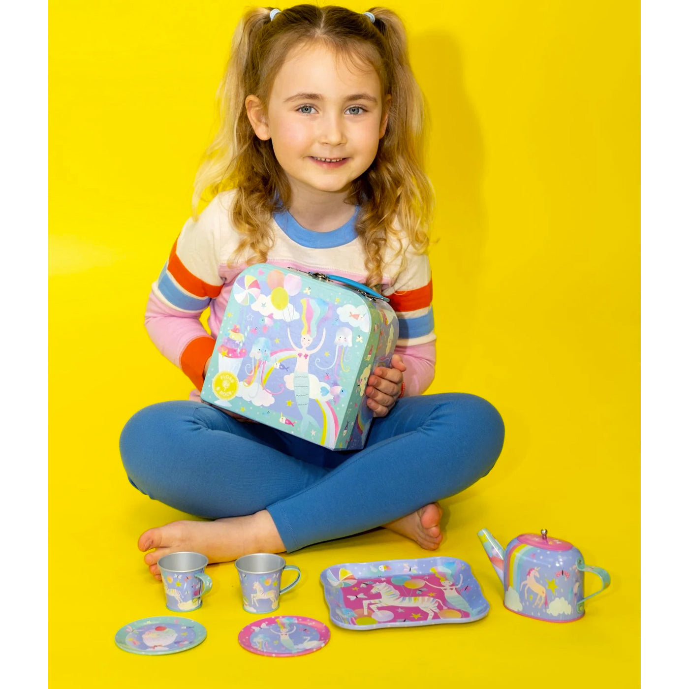 Floss & Rock Fantasy çay setimizde ışıltılı renklendirilmiş bir kutunun üzerinde denizkızı , gökkuşağı desenleri bulunmaktadır. Floss & Rock Çay Seti kutusunun içindeyse bir demlik, iki fincan, iki fincan tabağı ve bir tepsi bulacaksınız. Çay partisindeki misafirlere servis yapmak için harika değil mi? Floss & Rock'ın özenle tasarladığı çay seti küçüklerimizin hayal gücünü geliştirirken aynı zamanda arkadaşlarıyla da oynayabileceği muhteşem bir hediye olacaktır. Enchanted tasarımlı çay setinin güzel kutusunun bir de taşıma kulpu bulunur, böylece istediği her yere götürebilir. Gıda ile temas edilmemelidir.
