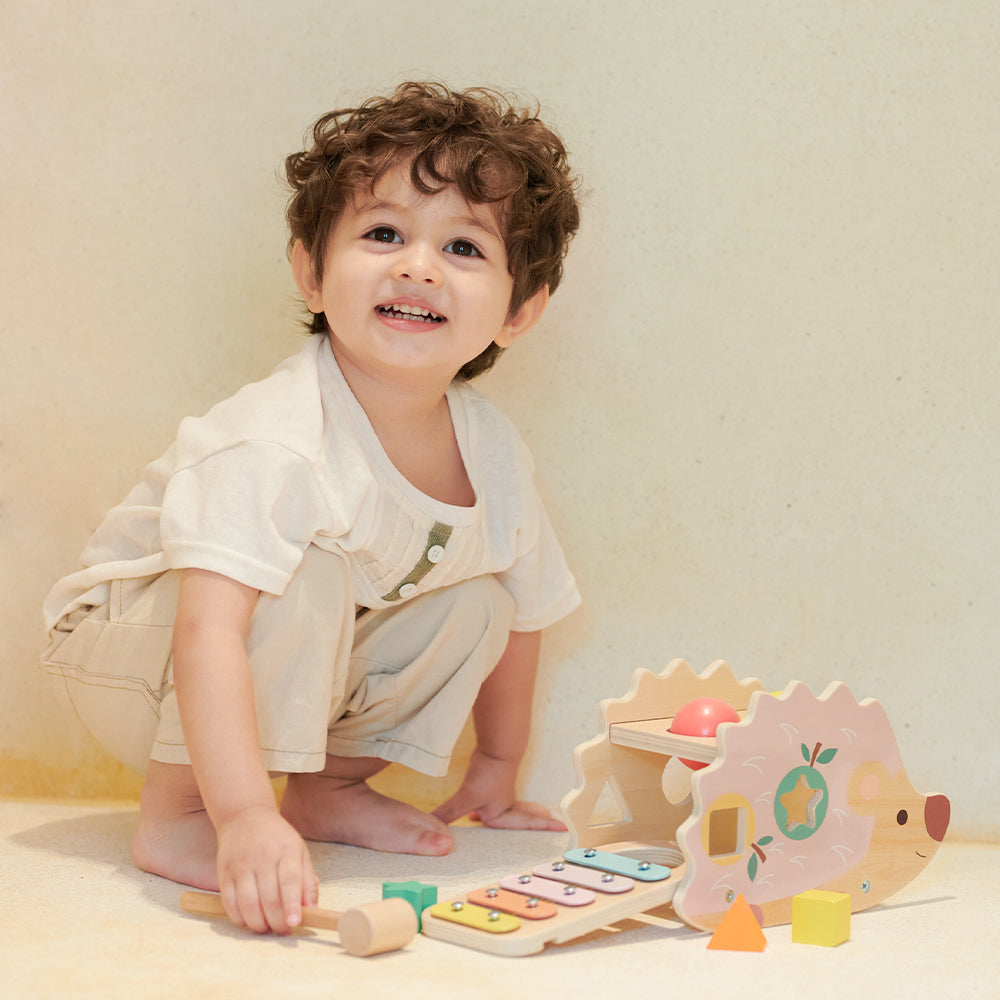 Çekiçle toplara vursunlar, şekil eşleştirme oyunu oynasınlar, ksilofon çalsınlar… Bu müzikli oyuncakla, topu deliklerden geçirip, benzersiz melodilerin tadını çıkarsınlar! Çocuklar Classic World Ahşap Tilki Aktivite Oyuncağı ile üç farklı oyun zevkini bir arada yaşasınlar.