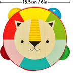 Tefe hafifçe vurun ve ahşap tefle dans etmek için eğlenceli bir şarkı yaratın! Gökkuşağı yeleli, dost canlısı aslan illüstrasyonuyla müzik becerilerinizin kükremesine izin verin!