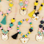 Bu hayvan temalı ahşap takı seti ile çocuklar, eğlenceli ve yapımı son derece olan kolay el işi etkinliği yapıyor. Set, son derece parlak takılar, püsküller ve ahşap boncuklarla, çok sayıda ahşap kolye ve bilezik yapmak için ihtiyacınız olan her şeyi içeriyor. Her el işi seti, yüksek kaliteli boyalı ahşap boncuklar, nakış ipliği, renkli püsküller, çocuklar için güvenli bir iğne, 5 adet lazerle işlenmiş hayvan süsü ve resimli, takip edilmesi kolay bir talimat sayfası içeriyor.