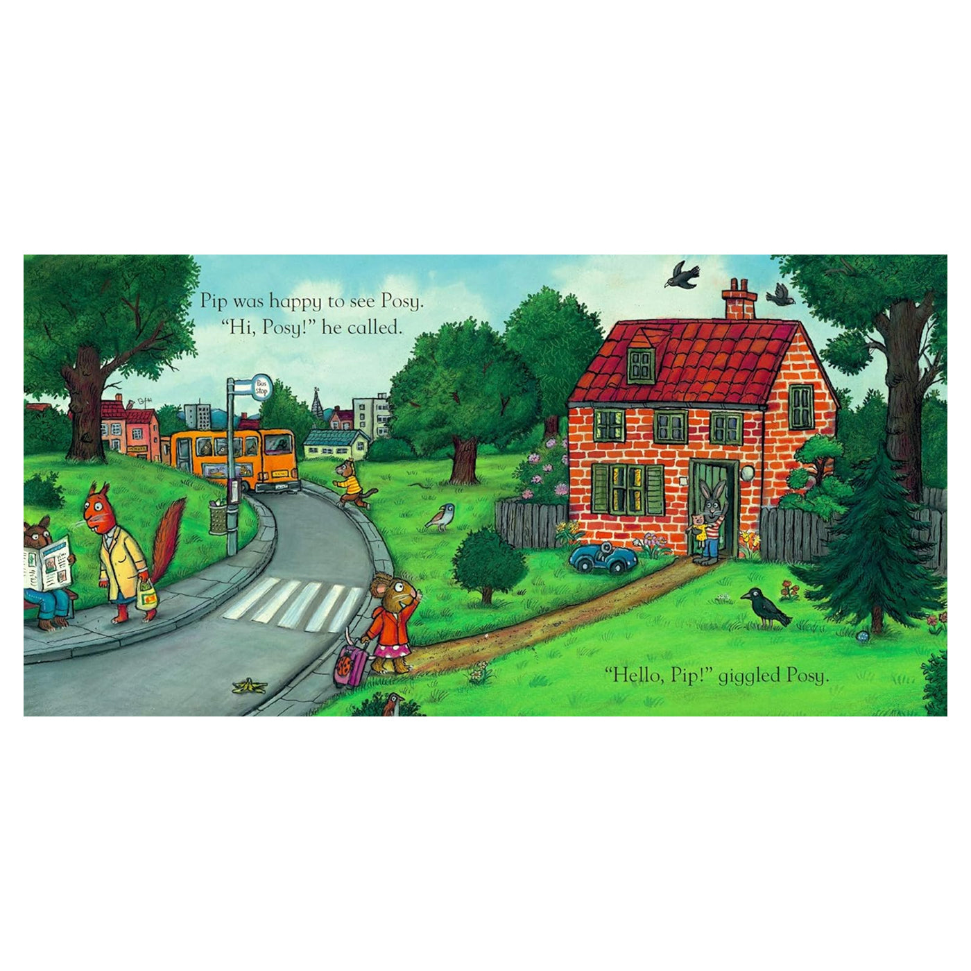 Pip ve Posy birbirlerinin en iyi arkadaşları. Beraber eğlenmeyi ve oynamayı çok seviyorlar. Ancak ara sıra üzülüp, sinirlenebiliyorlar. Fakat her ne yaşarlarsa yaşasınlar, sonunda nezaket ve anlayışla birbirlerini kucaklıyorlar. Bu hikayede ise Posy, Pip'e yatıya gidiyor. Bu yüzden oldukça mutlu ve heyecanlı. Birlikte çok eğleniyorlar. Fakat yatma vakti gelince Posy uyku arkadaşını yanına almadığını anlıyor ve çok üzülüyor. Pip ona bir dizi oyuncak önerir ama Posy reddeder, Pip de en sonunda çok sevdiği kendi uyku arkadaşını bir gecelik Posy'e verir ve sorun çözülür... Ünlü illustratör Axel Scheffler'ın bu çok beğenilen serisi, çocukların yaşadıkları iniş ve çıkışları, hayal kırıklıklarını ve arkadaşlık bağlarını son derece naif bir anlatım ve yine muhteşem çizimlerle anlatıyor.