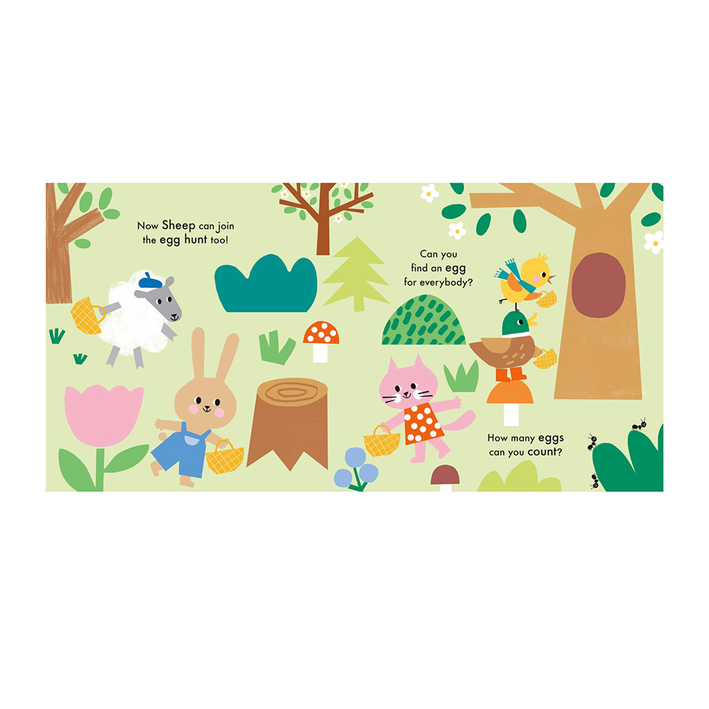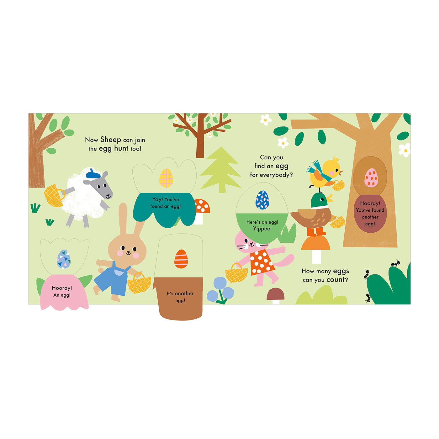 Her sayfada kaldırılacak çok sayıda sağlam kapakçık ve sevimli hayvan karakterlerini tanıtan basit hikayesi ile bu kitap küçükleri yumurta avına davet ediyor. Tavşanı takip edin, bakalım sepetine koyacak yumurta bulabilecek mi? Yoksa yol boyunca daha da iyi şeylerle mi karşılaşacak?