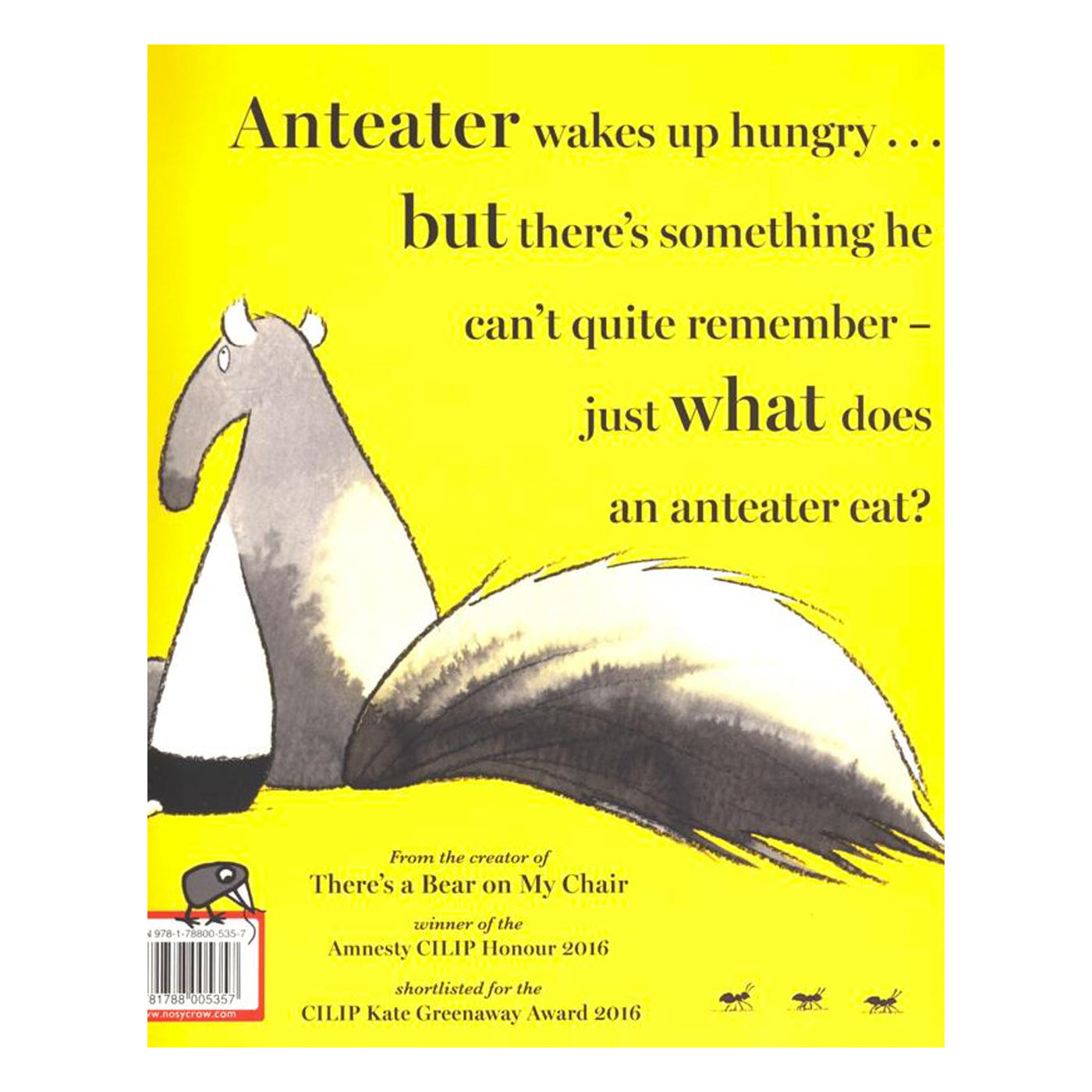 Ödüllü yazar ve illüstratör Ross Collins'in bu absürt derecede komik hikayesi, çocukları kahkahalarla güldürecek. Karıncayiyen çok aç, ama karıncayiyenlerin gerçekte ne yediklerini tamamen unutmuş! Şaşkın ve karnı guruldayarak diğer hayvanlara danışır. Ama hiçbiri ona yardımcı olamaz. Belki karıncalar bu sorunun cevabını bilir... Belki de cevap düşündüğünüz kadar açık değildir!