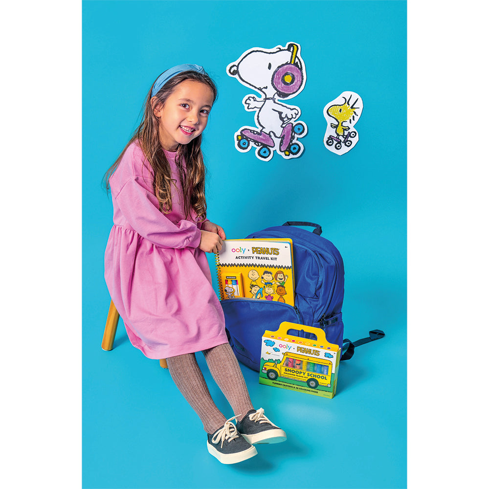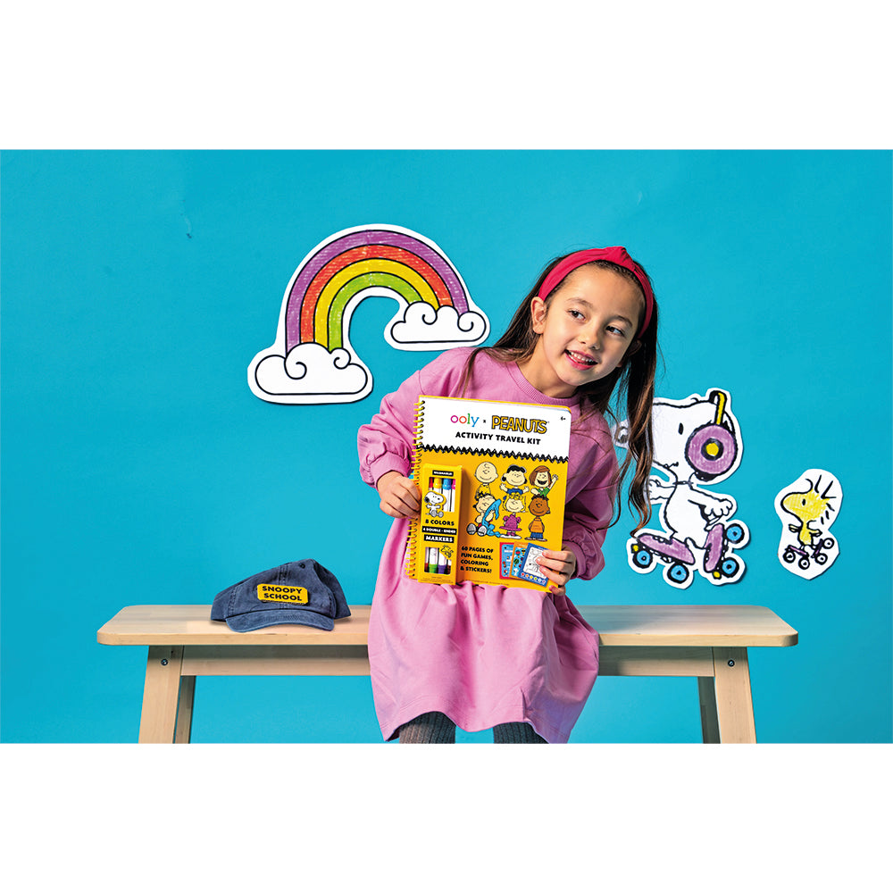 OOLY x Peanuts Seyahat Aktivite Seti, Snoopy ve Peanuts çetesini seven çocuklar için tam anlamıyla eğlence dolu bir set sunuyor. 60 sayfalık bulmacalar, oyunlar ve boyama sayfalarıyla dolu aktivite kitabı sayesinde çocuklar uzun yolculuklarda ya da evde keyifli vakit geçirebilir. Setin içinde yer alan çift uçlu 4 kalemle toplam 8 farklı renkle boyama yapılabilir, ayrıca 2 sayfa Peanuts temalı sticker ile resimler süslenebilir. Hem pratik hem de eğlenceli bu seyahat seti, çocukların yaratıcılığını desteklerken Peanuts dünyasını keşfetmelerine olanak tanır.