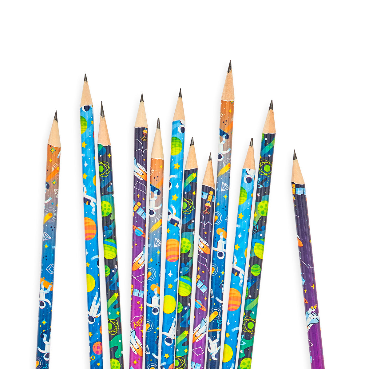 İlhamını astronotlardan alan bu kalemlerle, yazı yazmak, ev ödevlerini yapmak artık çok daha eğlenceli olacak. Her sette 12 adet, 2 no'lu kurşun kalem; kalemlerin ucunda minik silgiler yer alıyor.