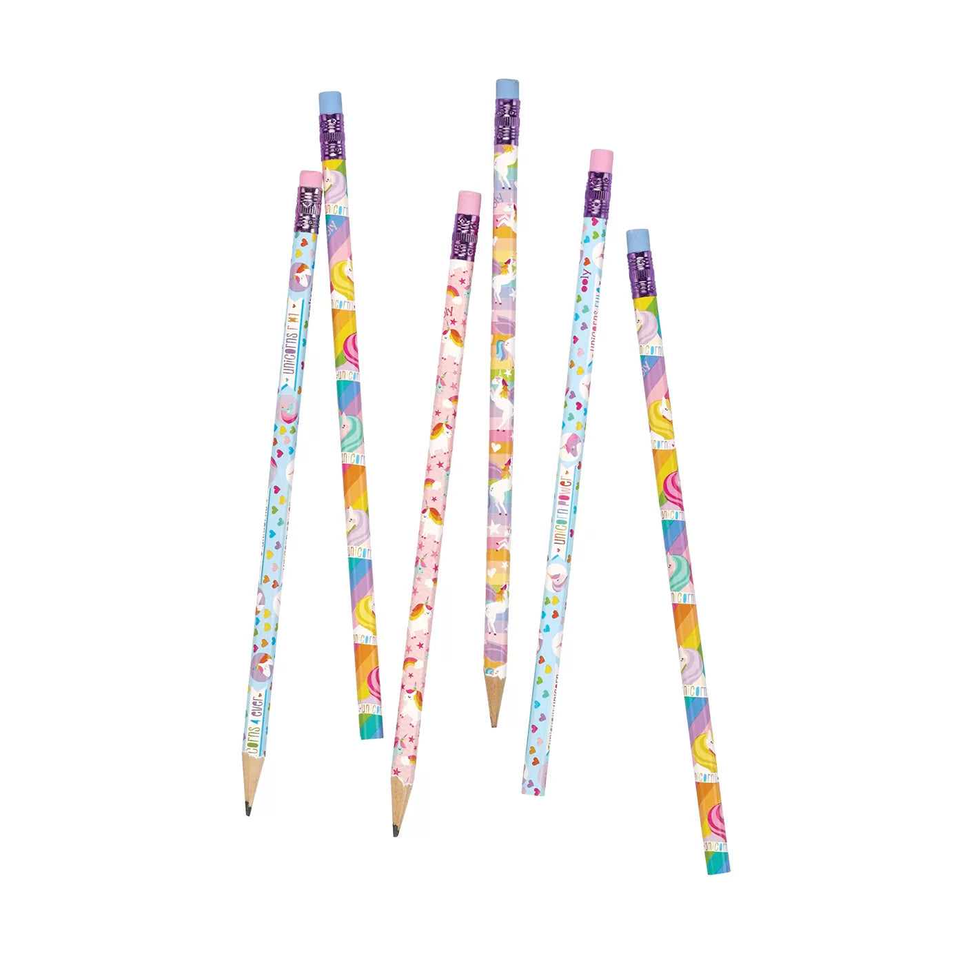 İlhamını unicorn'lardan alan bu kalemlerle, yazı yazmak, ev ödevlerini yapmak artık çok daha eğlenceli olacak. Her sette 12 adet, 2 no'lu kurşun kalem; kalemlerin ucunda minik silgiler yer alıyor.